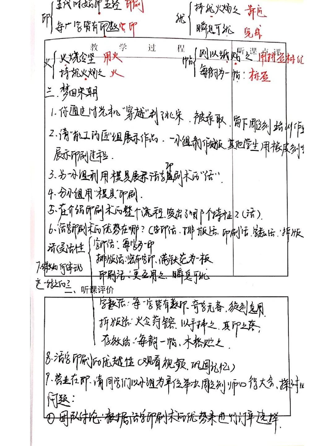 2.请“能工巧匠”组展示自制活字印刷术印刷过程(课前小组长制作“铁板”,组员每人用橡皮擦刻一个字)