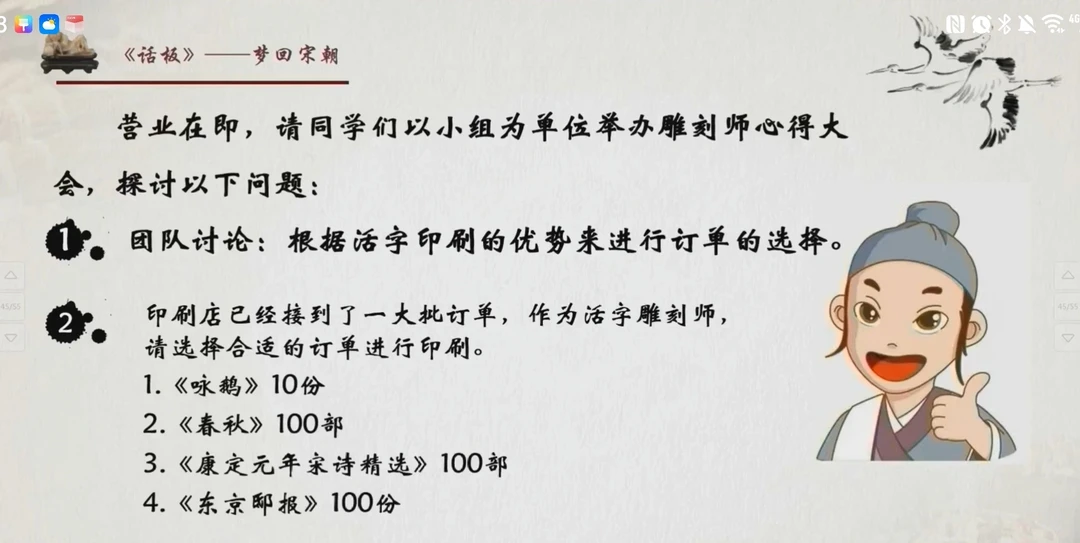 1⃣团队讨论:根据活字印刷的优势来进行订单的选择。
