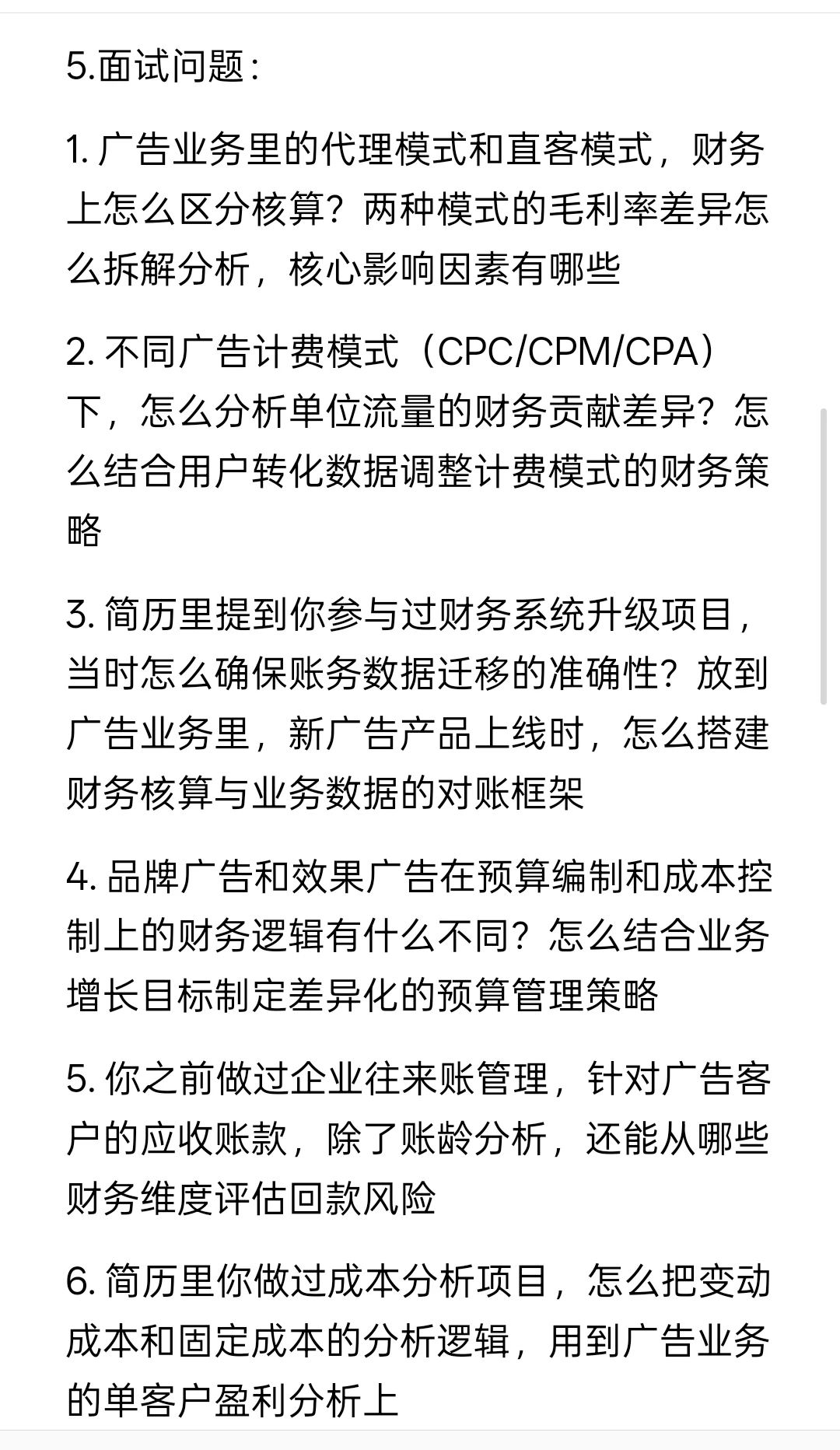 14. 你没有广告行业财务经验,怎么快速建立对广告业务模式的认知?具体会做哪些