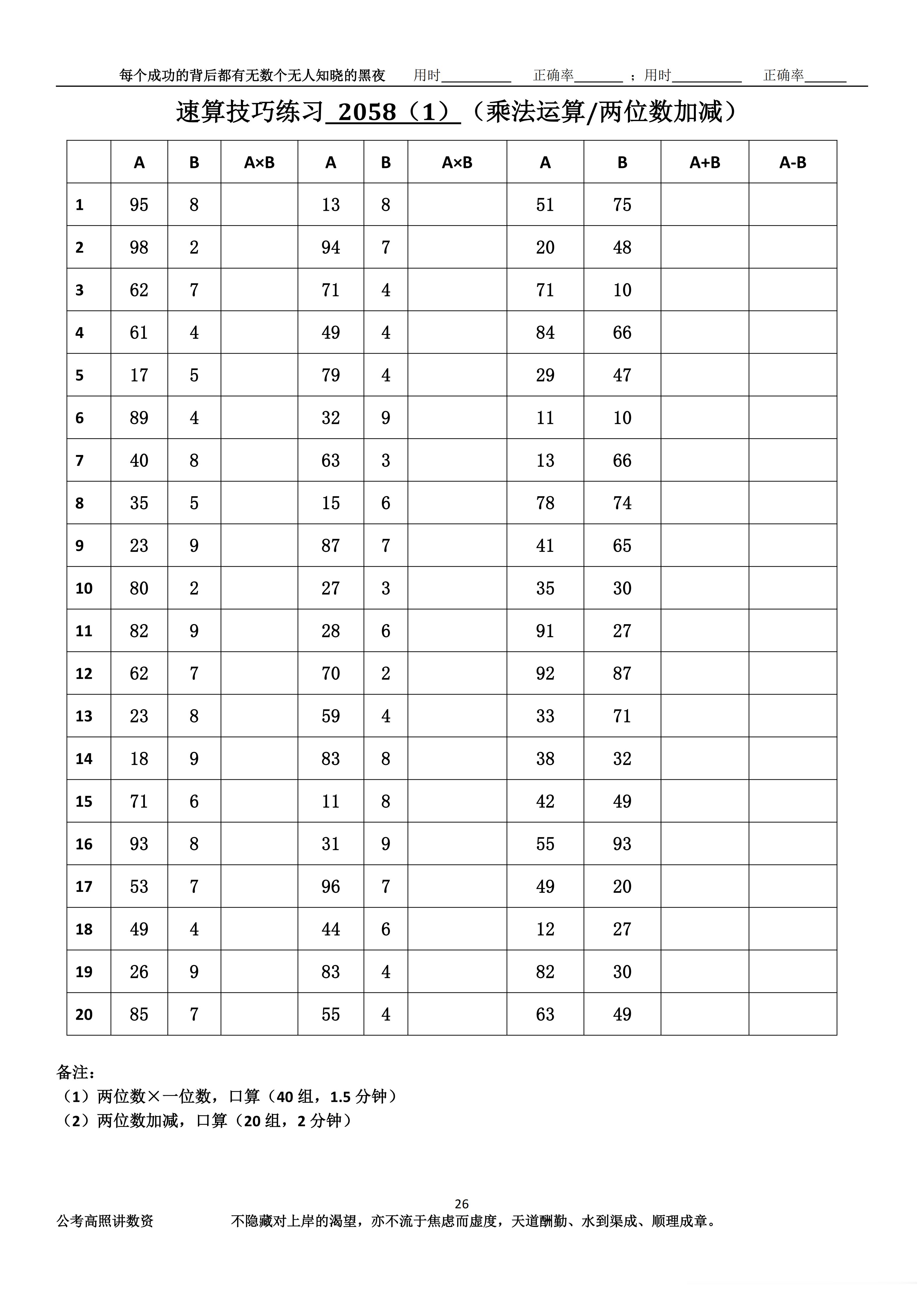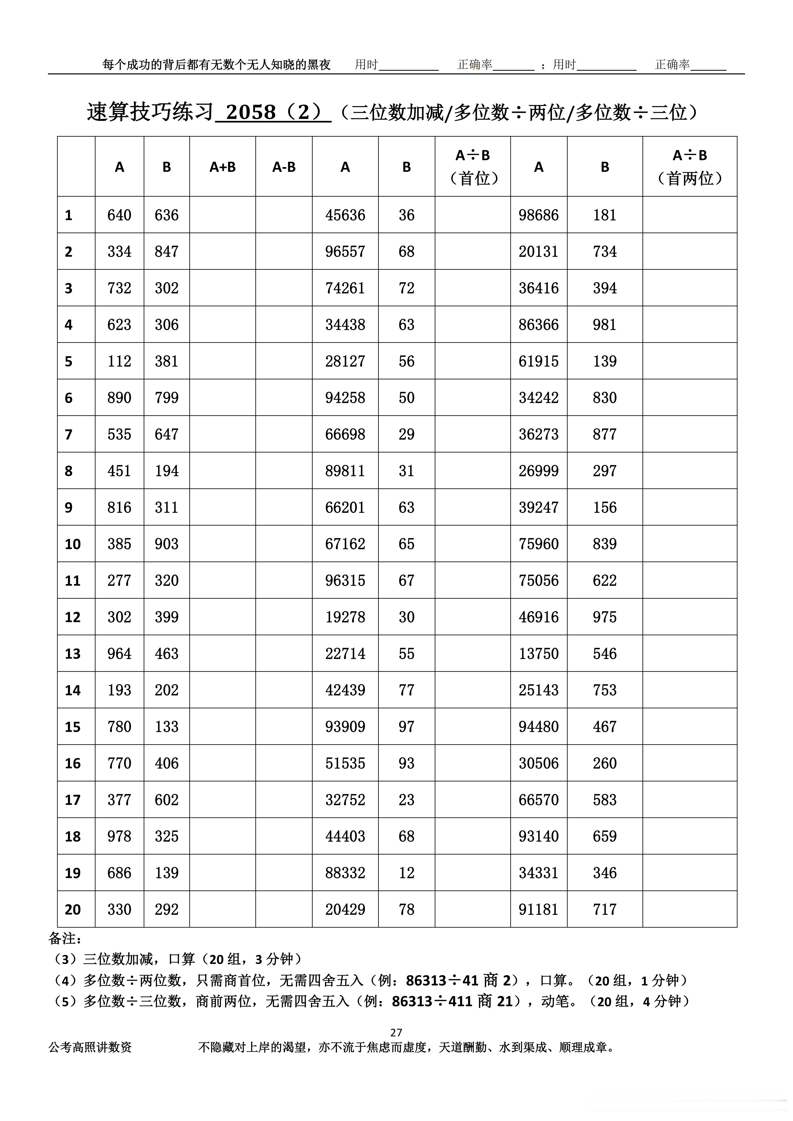 跟着高照练速算决战公考 速算练习2058相信自己,努力学习。速算链接汇总:网页
