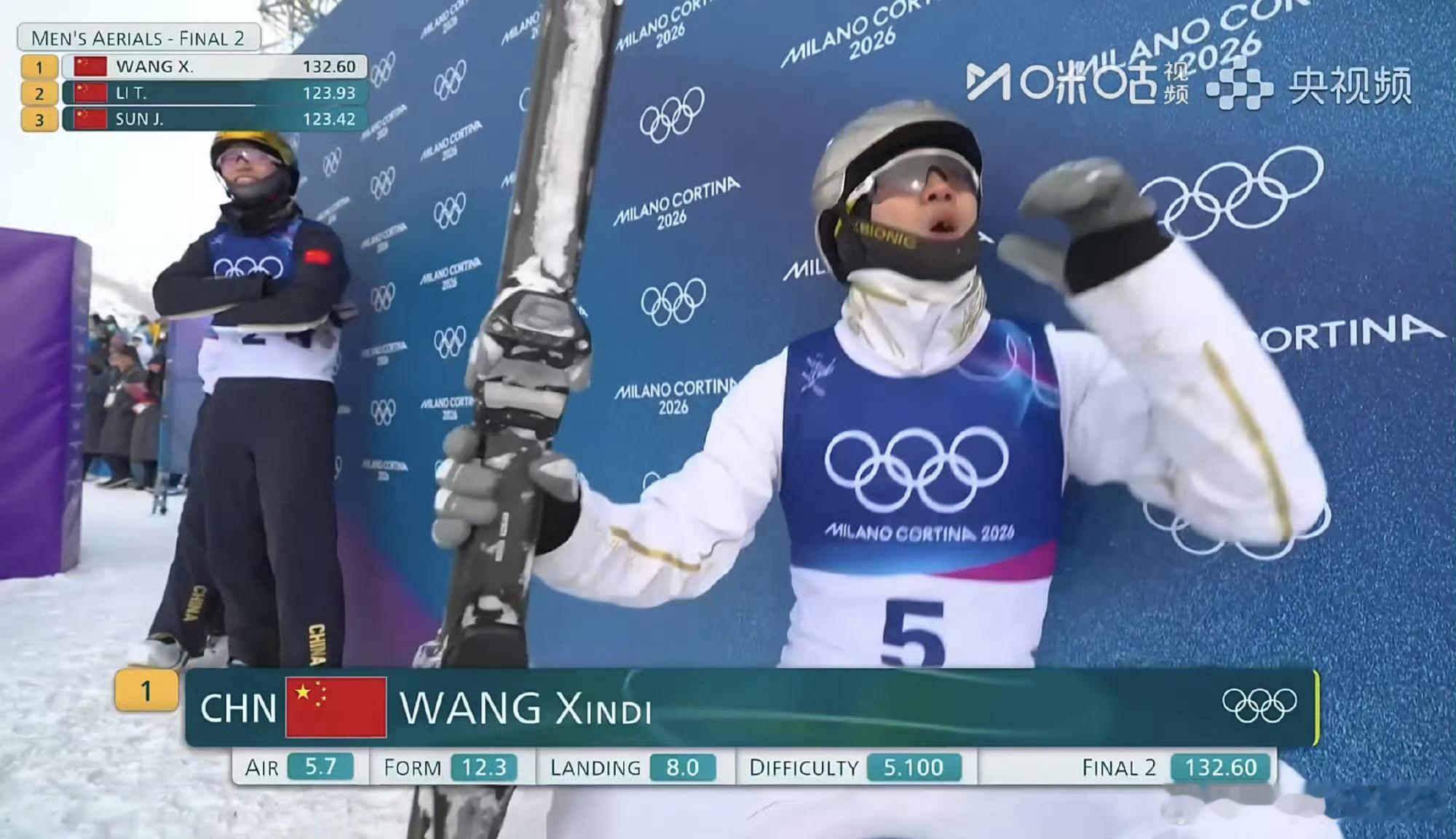 【祝贺!王心迪金牌】米兰-科尔蒂纳冬奥会,自由式滑雪男子空中技巧决赛,中国选手发挥出色,获得冠军!中国队米兰第4金
