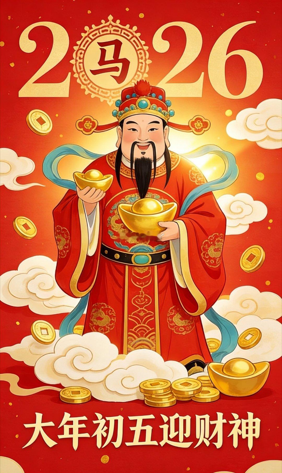 诗卓卓 大年初五迎财神,开门纳福接好运!愿新的一年财源滚滚,平安顺遂,身体健康,