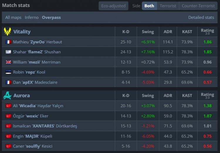 Vitality:mezii、apEX、ropz、flameZ、ZywOo