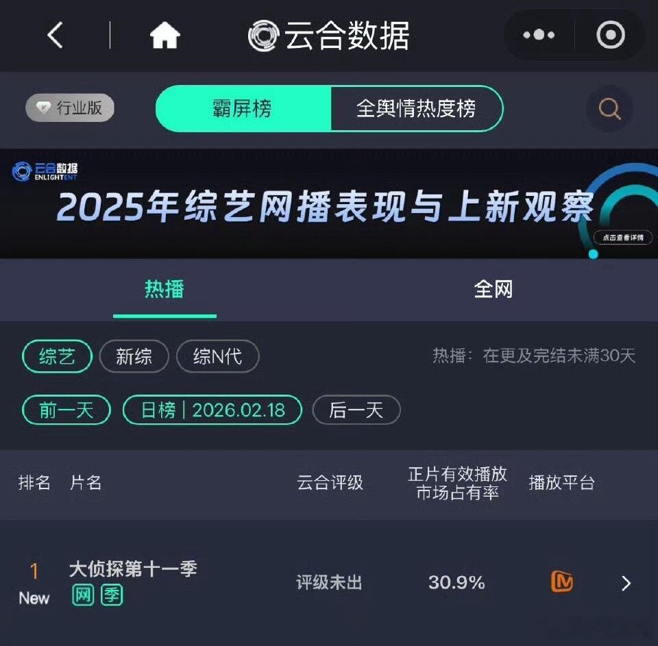 《大侦探11》首播云合30.9%,次日云合39.7%太强了
