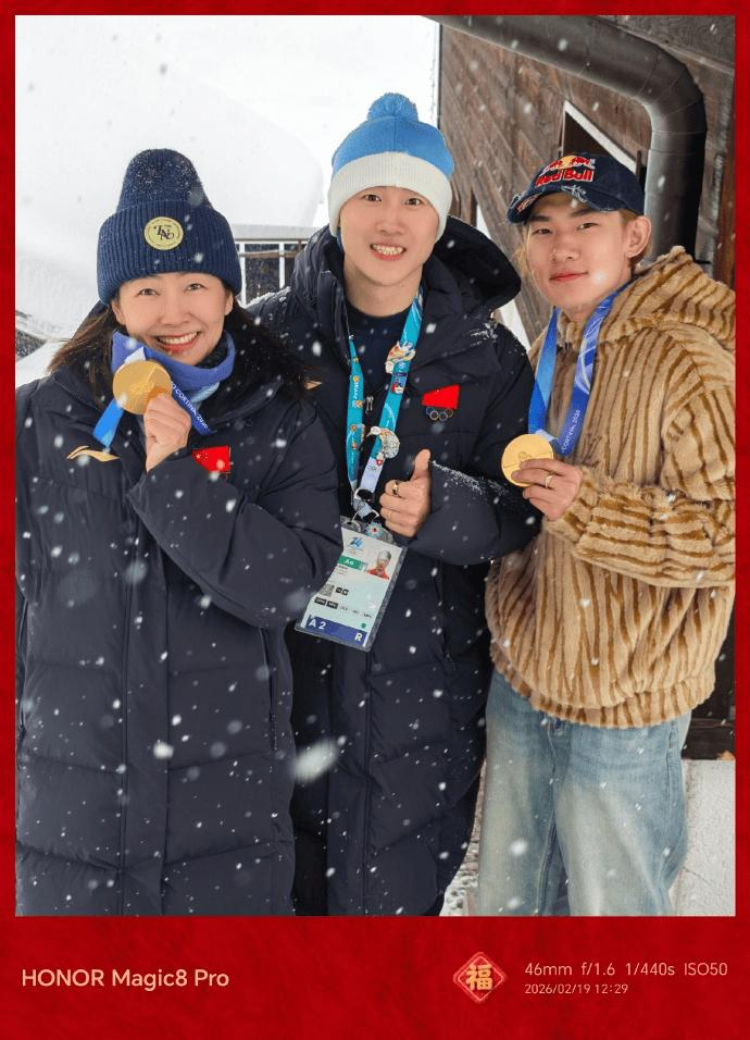 王心迪的老婆徐梦桃更新社媒,晒夫妻两人与苏翊鸣合照,配文写道:“其实我和小鸣(苏翊鸣)早已料到,昨天拍的,你就说厉不厉害?”
