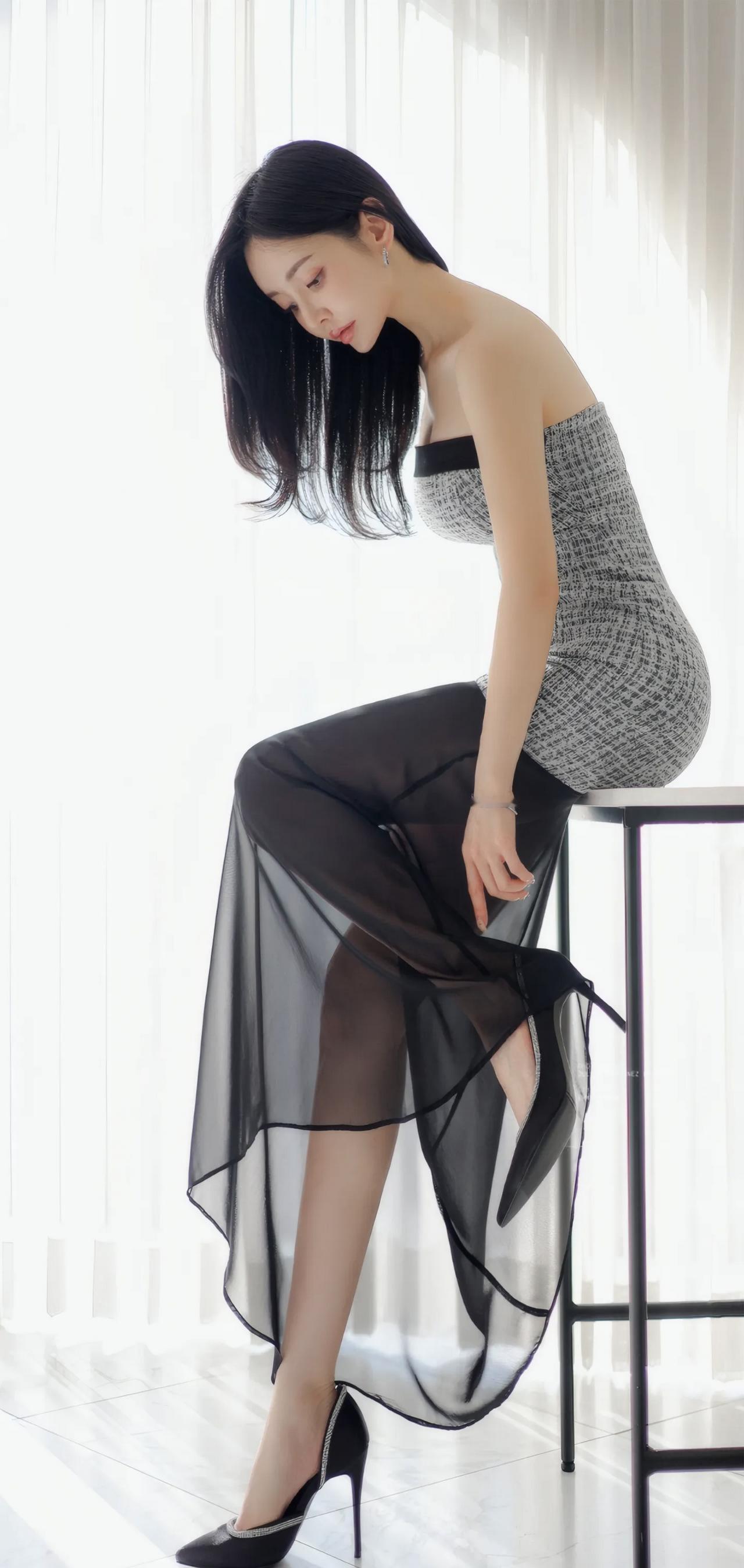都市时尚女郎,黑白撞色连衣裙,优雅气质,都市风情。