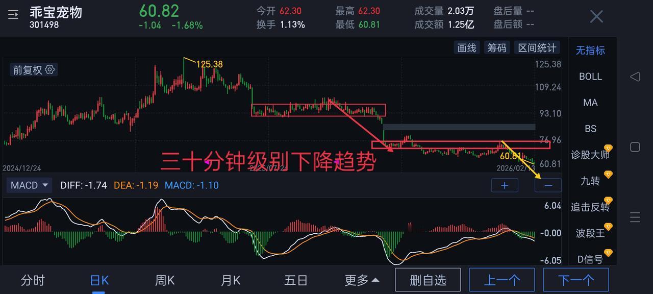 缠中说禅"教你炒股票108课"原文第29课《转折的力度与级别》 又是很缠绕的一节课。结合最近的上证指数走势结构和乖宝宠物走势结构来帮助对本文的理解。图〈4〉乖宝宠物,如能形成三十分钟级别趋势背驰,后对应的走势分三种:1,日线一笔上反弹接触64.71,但不能进入中枢,将可能形成第二个中枢的扩展。2,如果进入中枢则会形成更大级别的盘整或反趋势。图〈5〉上证指数,目前走势,在4034形成三十分钟级别趋势背驰,随后的日线一笔下回到了第二个三十分钟中枢内。首先形成中枢扩展的条件已不具备。剩下走势只有两种选择,形成大于三十分钟级别的盘整或反趋势。