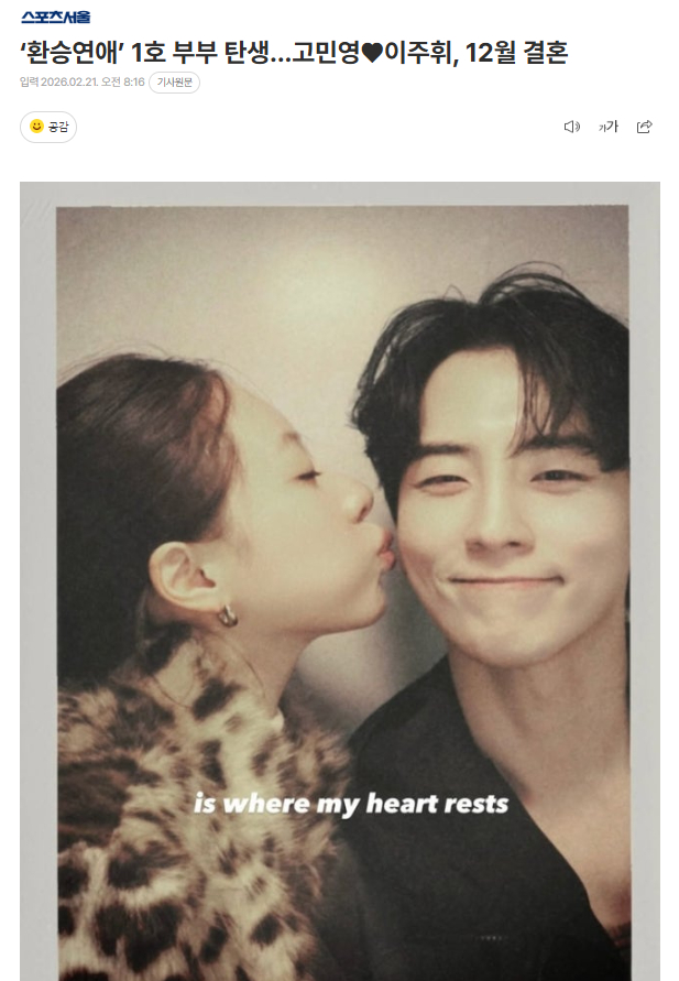 出演TVING原创综艺《换乘恋爱》第一季的情侣高敏英和李周辉宣布将结婚。通过节目成功复合的两人实际结下夫妻之缘,粉丝们纷纷表示祝贺。