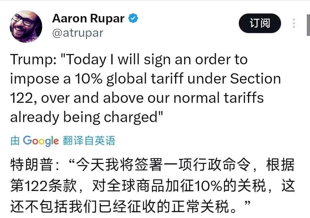 2月21日,加州州长纽森发文:“特朗普因其非法关税政策从美国民众手中夺取数千亿美元而受到追究。他已开始发脾气了。”特朗普刚宣布,将签署一项行政命令,对全球商品加征10%的关税,这并不包括已经征收的关税。 [机智]美国最高法院刚判违法,特朗普反手再加税,这场“美国对内收割”藏不住了!高院刚裁定旧关税违法,特朗普立刻用第122条款再签10%全球关税,纽森直言这是从民众手里抢钱。历史早有答案:2018年关税战超90%成本由美消费者承担,累计掏了上千亿美元。如今旧账未清又添新税,本质是把法律失利转嫁给普通人。全球供应链承压、盟友被迫反制,美国内通胀再抬升。关税从来不是杀敌利器,而是自缚枷锁,靠抢自家百姓钱包换政绩,注定走不远!