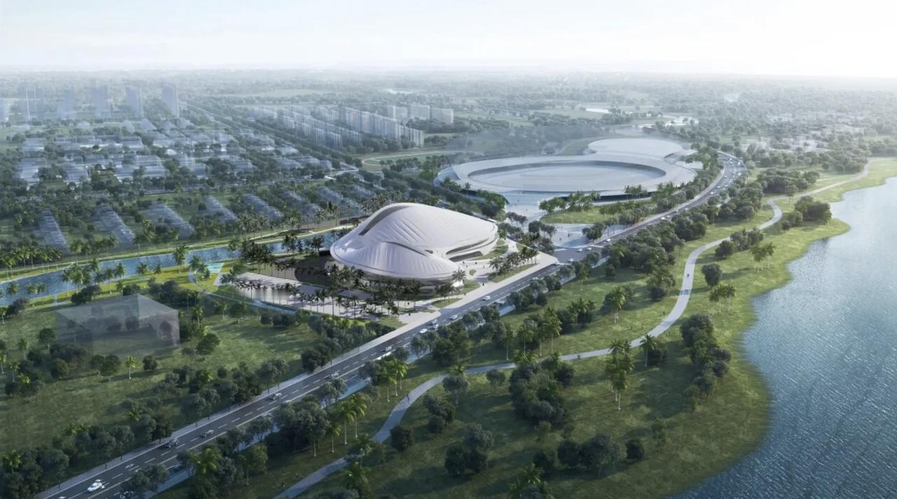 投资5.84亿元!琼海城投文化体育中心二期即将竣工 省运保障工程迎新进展 琼海城投文化体育中心二期项目已进入竣工倒计时,作为琼海市“十四五”公共文体设施重点项目与2026年第七届海南省运动会核心保障工程,该项目建成后将显著提升区域文体服务水平。 项目坐落于琼海市嘉积镇万泉河畔,由琼海市城市投资运营有限公司投资建设,中国建筑科学研究院负责设计,中建一局一公司承建,二期及配套设施总投资达5.84亿元,总建筑面积约2.5万平方米。工程于2025年3月14日正式开工,同年8月15日完成主体结构封顶,目前正有序推进装饰装修、机电安装及收尾作业,整体建设进度稳步推进。 项目建设内容涵盖一座高标准游泳馆、一座400米标准跑道训练场,同步配套全民体育设施、沐佑沟下游段生态治理工程,以及室外绿化、给排水、道路等基础设施。其中游泳馆设置25×50米标准泳池,可满足省级水上赛事举办要求。 建筑设计融合海南地域特色与万泉河水系特征,整体采用流畅的流线型双馆造型,形态舒展大气。主馆游泳馆运用大跨度曲面钢结构,屋面最高点达29.8米,以白色金属板材打造水波般的线性肌理,搭配环绕式超白玻璃幕墙,兼具现代美学与实用功能。 该项目严格按照专业赛事标准建设,可承接第七届海南省运动会水上项目等省级赛事,同时面向市民开放使用,填补了琼海大型专业游泳馆与标准化田径训练场的空白。项目投用后,将进一步完善城市公共文体配套,推动全民健身与文体旅融合发展,成为琼海城市新地标。