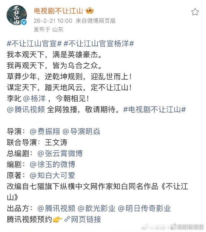 是杨洋的话我都让了 感觉杨洋就是从书里走出来的李叱!少年气的孤勇和上位者的冷峻他都有,剧方单独官宣的大男主排面加上粉丝应援,这阵仗太强了,祝拍摄顺利。