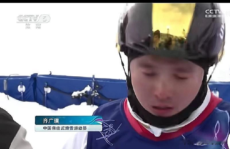 昨天齐广璞赛后哭了,他说:“自己没有什么遗憾,能平安完赛就成功了,看见他们超越了我 我就放心了,”体育有时就是这么残酷,他预赛都很稳定,最后为了突破选择了更高的难度,也就选择了更大的风险,虽然他没有站上领奖台,但这位老将的确尽力了,我们应该感谢他的努力。 齐广璞,1990年10月20日出生于江苏省徐州市沛县,中国自由式滑雪空中技巧运动员,北京体育大学硕士研究生,哈尔滨工业大学在读博士。