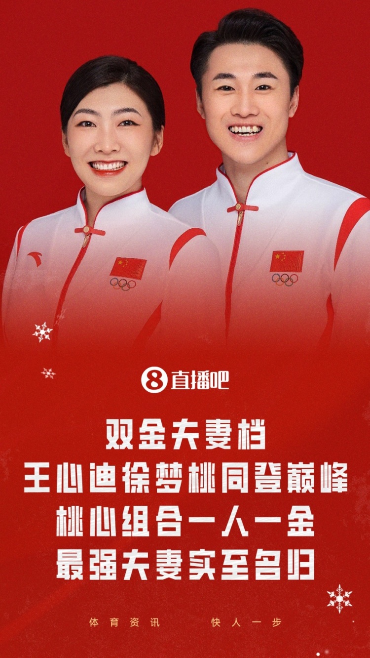 直播吧2月21日讯本届冬奥会,王心迪和徐梦桃夫妻双双为中国代表队在自由式滑雪空中技巧项目夺得金牌,成为冬奥史上罕见的同届夫妻双金,也是自由式滑雪项目历史上第一对获得金牌的夫妻。