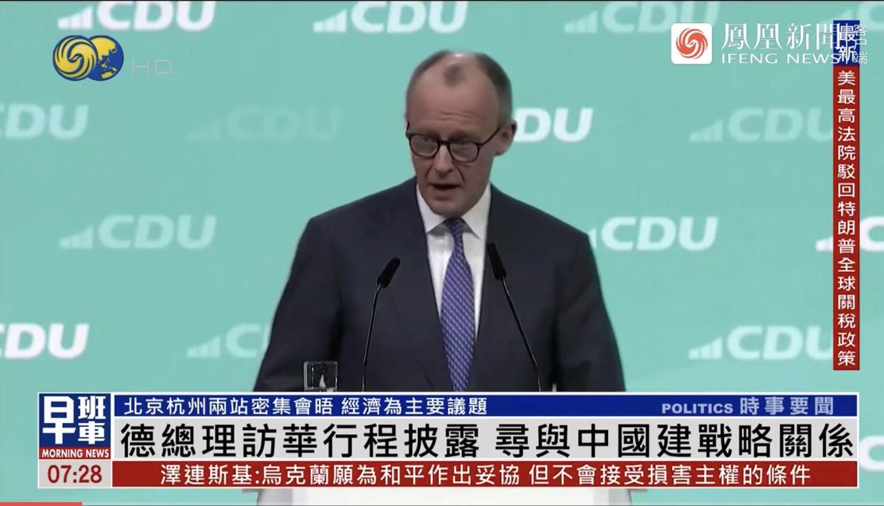 据凤凰卫视报道,德国总理默茨首次访华行程已确定,将于2月24日至26日访问北京、