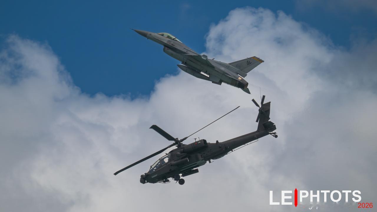 阿帕奇直升机和F-16战斗机曾进行过联合飞行表演。最著名的一次是在2026年的新加坡航展上。这次表演由新加坡空军(RSAF)呈现,具体参演机型为AH-64D“阿帕奇”武装直升机与F-16C战斗机6。 表演的主要特点包括: - 技术挑战巨大 :将一架高性能喷气式战斗机与一架直升机进行编队表演,被外界视为一项技术创举。两者在速度、高度和操控特性上存在巨大差异,对飞行员的态势感知能力和协同配合要求极高7。 - 动作编排精密 :整个表演持续约11分钟,包含了17个独立的特技飞行动作,其中有6个是联合编队动作,3个为全新设计的动作2。 - 视觉效果震撼 :表演中两架军机多次在空中近距离交汇,增加了表演的紧张感和震撼力2。此外,阿帕奇直升机还首次在飞行表演中释放了干扰弹,增强了视觉效果2。
