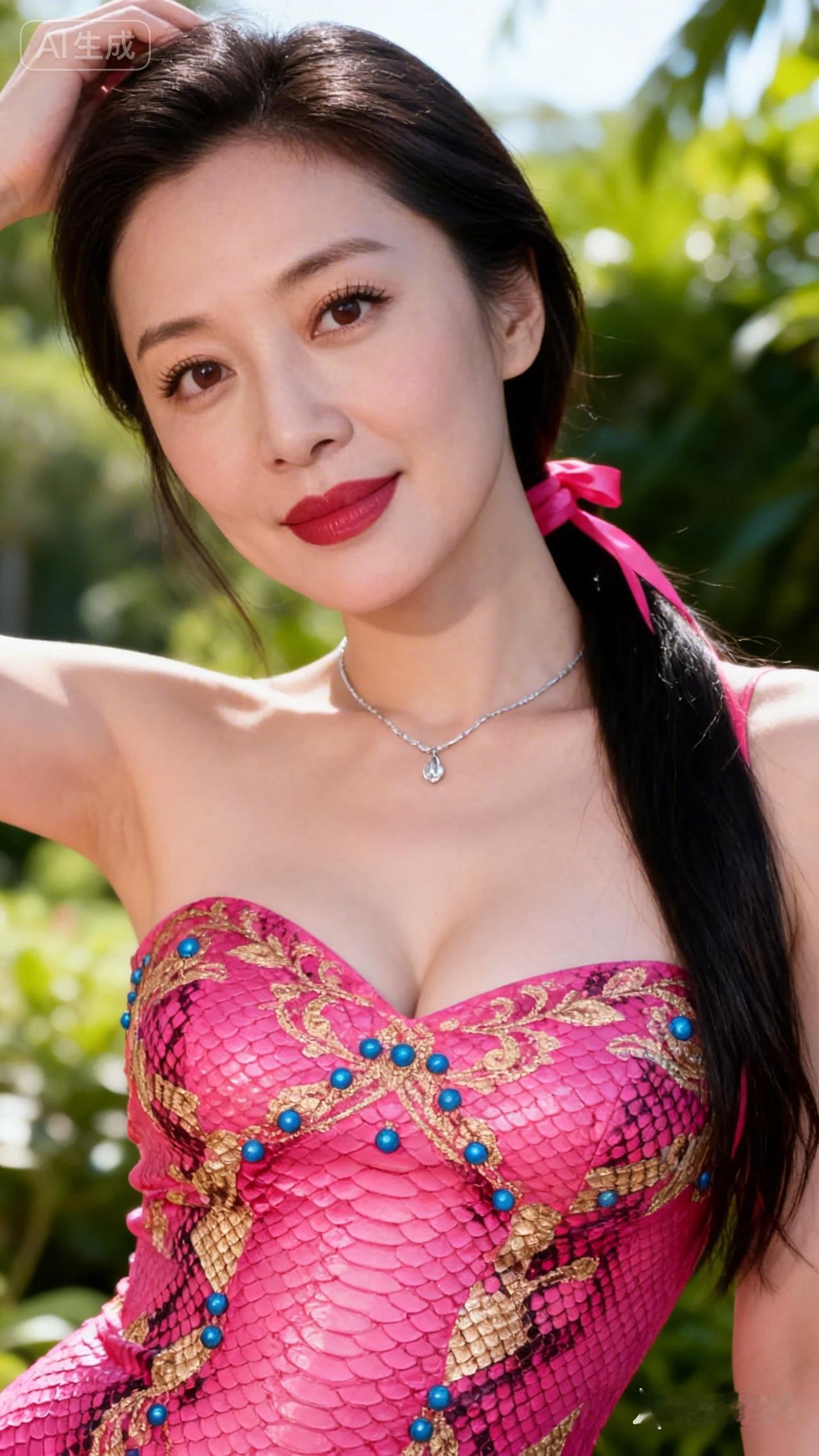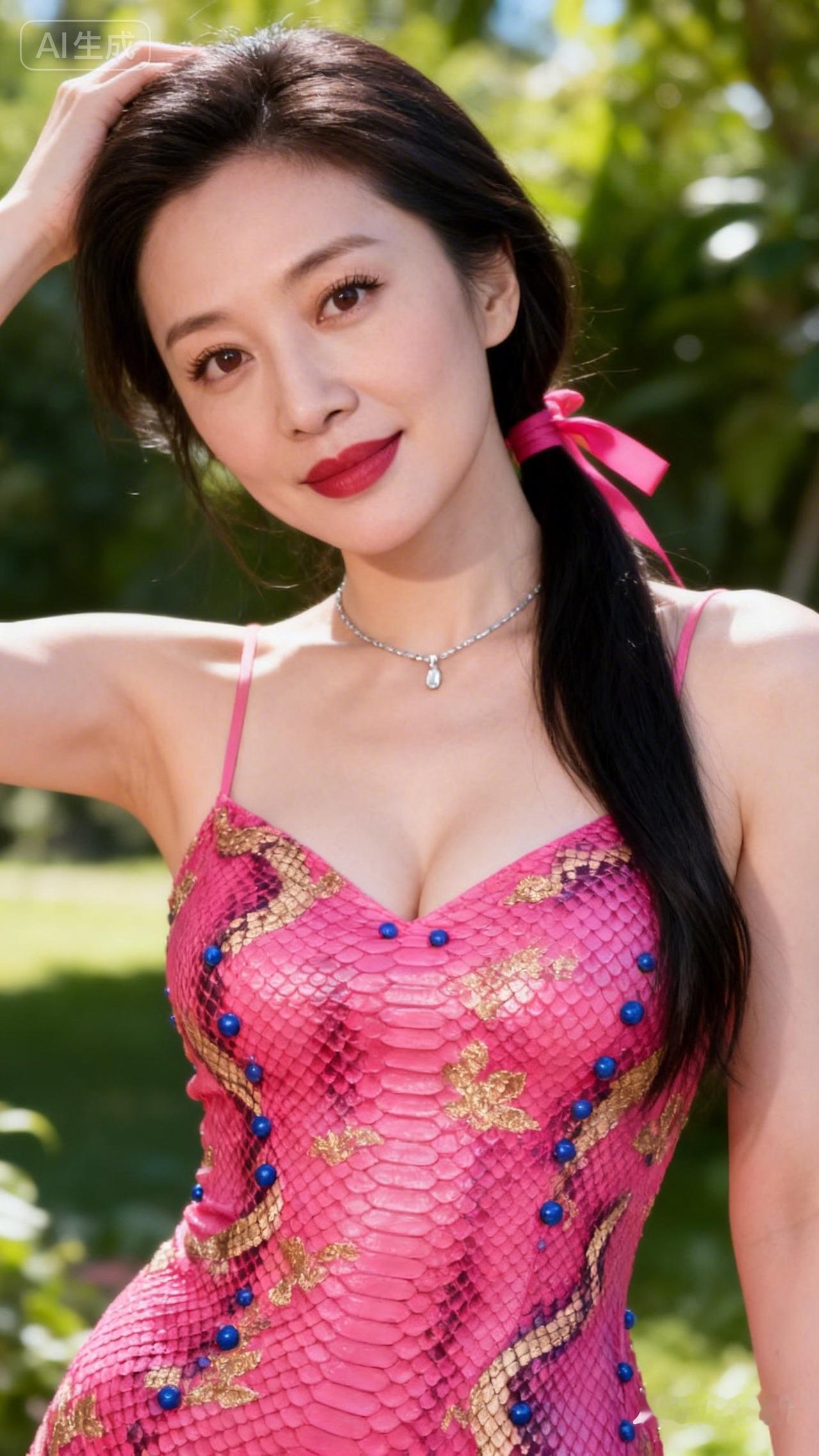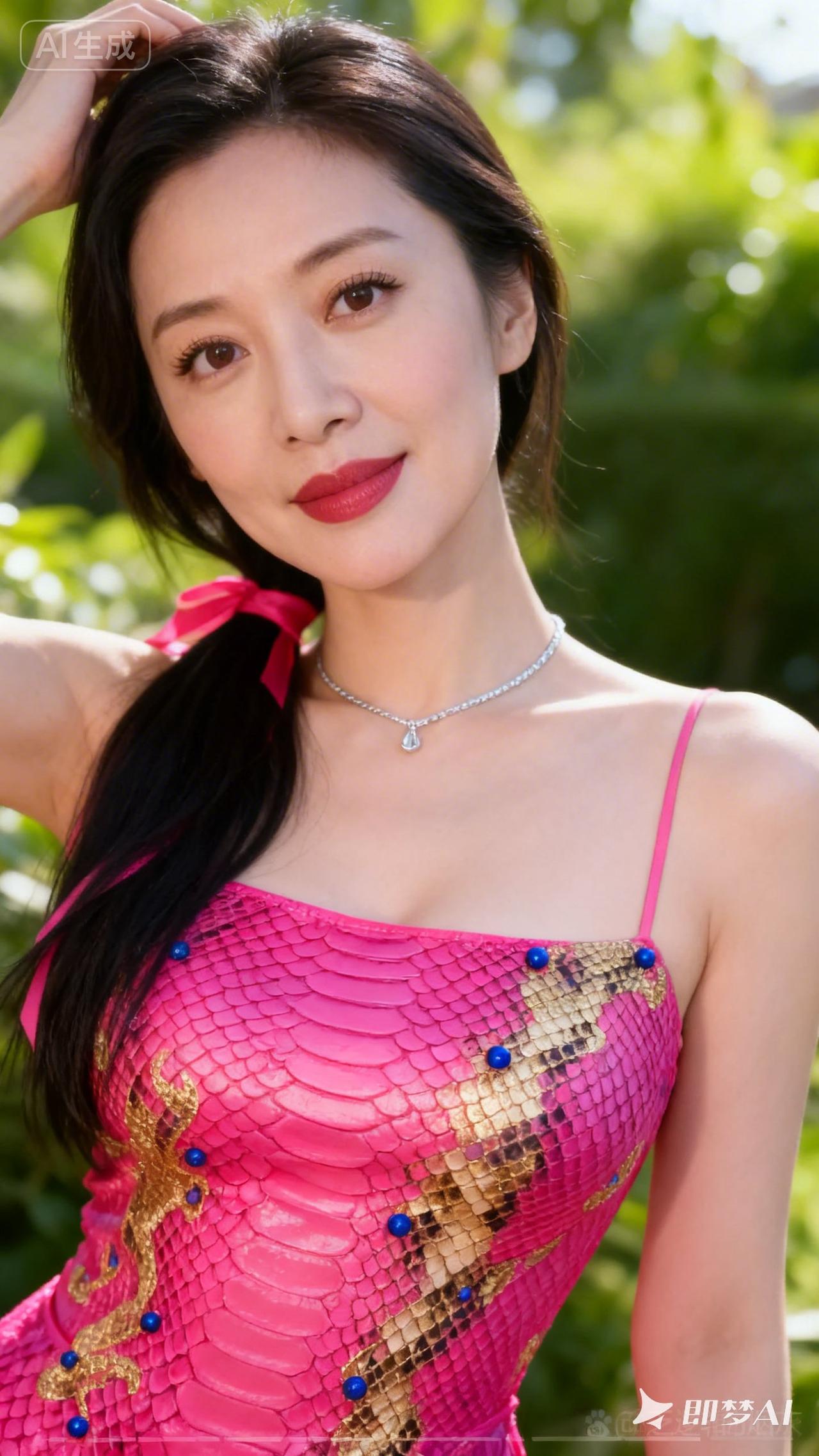 夏日风情,粉色蛇纹连衣裙,甜美与性感并存!