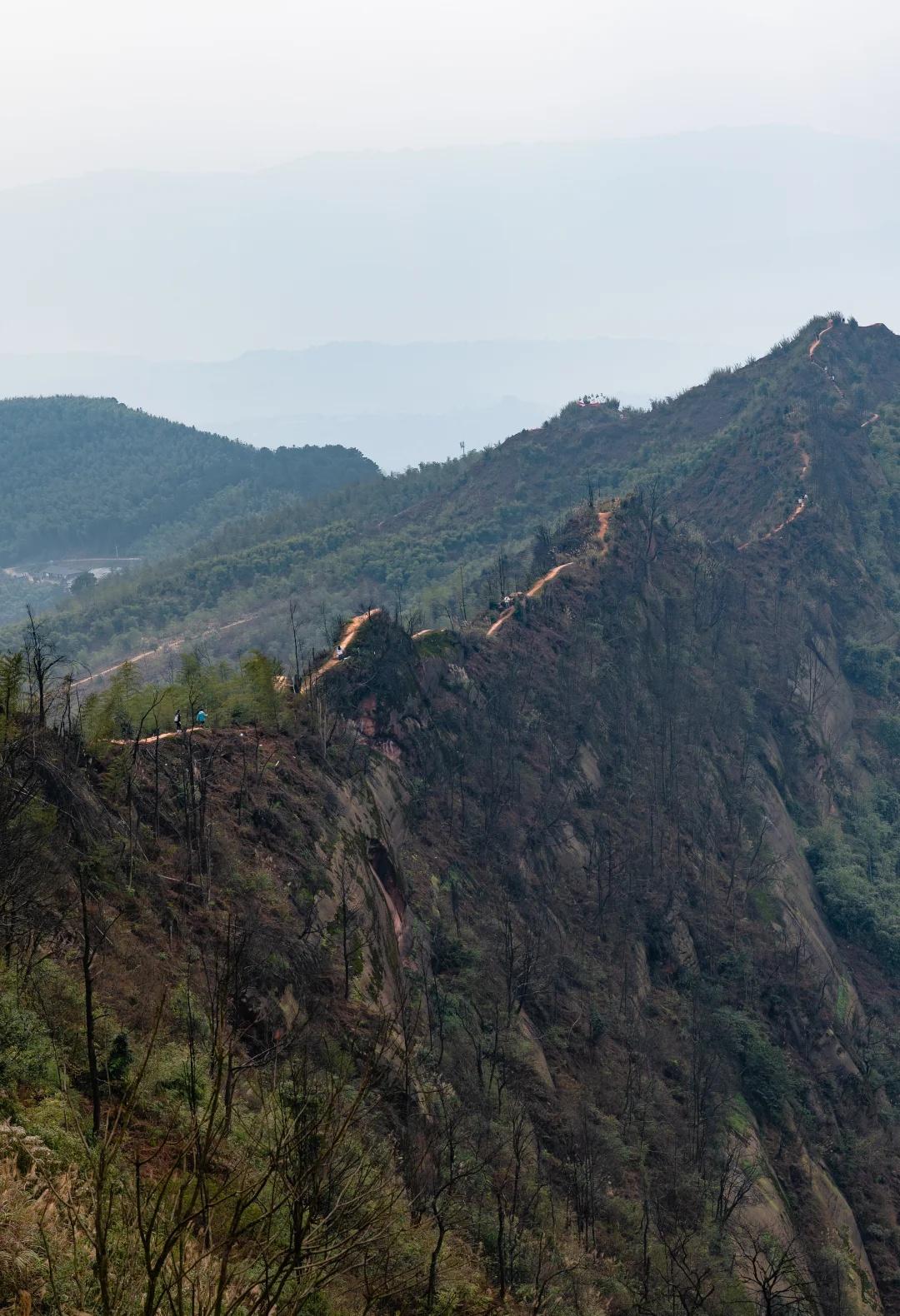 泸州丨惊险的天台山与山火遗迹 泸州出发1小时,到达合江车辋镇与赤水天台山镇的交界。 导航:贵州省遵义市赤水市天台山 这里最出名的是怀阳寺前约1km多山脊上的路,最窄的地方可能仅40cm,两侧都是悬崖。 另外,我们还能看见碳化的树木,是3年前的山火留下的。稀疏的植被难掩红色的土壤,恍惚间以为自己到了西北地区。 ps.徒步的话有10km环线,大约要走4小时。 还可以到赤水县城尝一尝特色美食叉洋芋。 (推荐停车位置:河滨大道西路停车场) 尝一尝特色美食叉洋芋 新年旅行第一站 我是春节主理人 徒步丈量世界 泸州周边游 泸州周末去哪儿 家庭出游日 春节去哪玩 亲子游