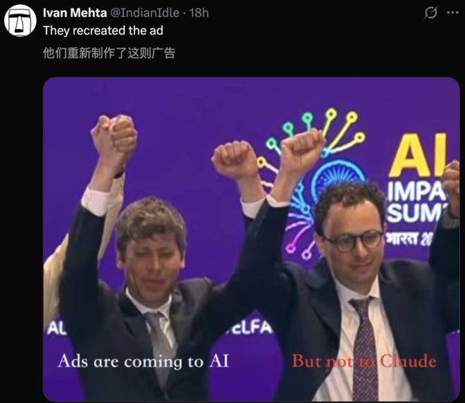 除了用户和内部员工的反对,OpenAI的广告计划,还遭到了死对头Anthropic的「狙击」,砸下数千万美元,在超级碗做广告嘲讽OpenAI「把广告带进AI」。