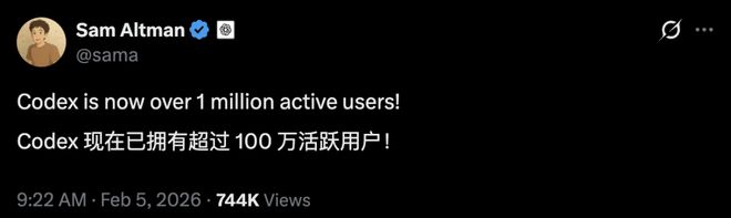 Codex在2月5日活跃用户超过100万