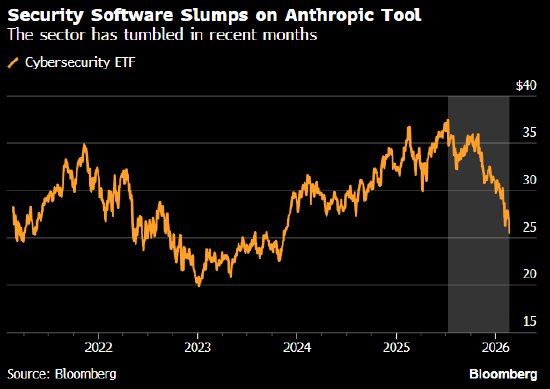 网络安全软件类股周五大跌,此前AnthropicPBC在其ClaudeAI模型中引入一项新的安全功能。
