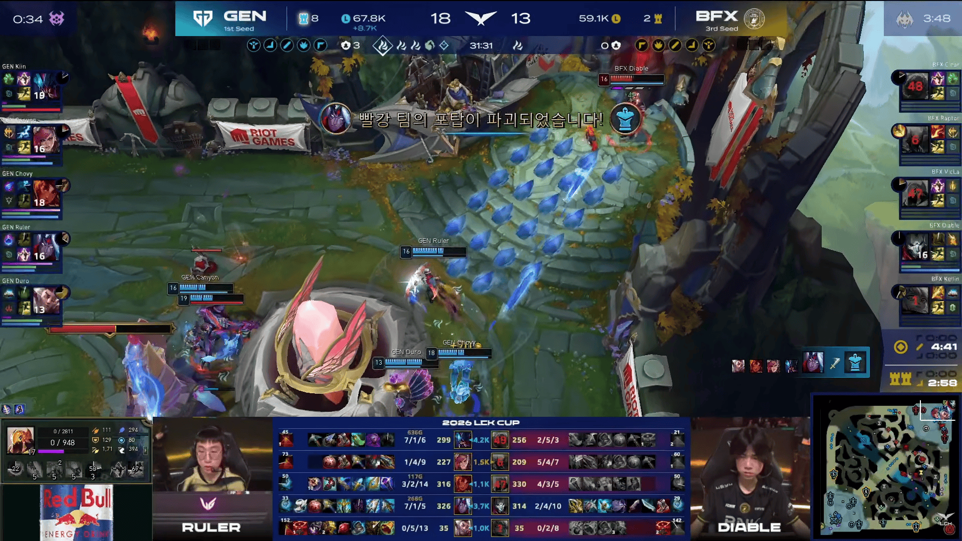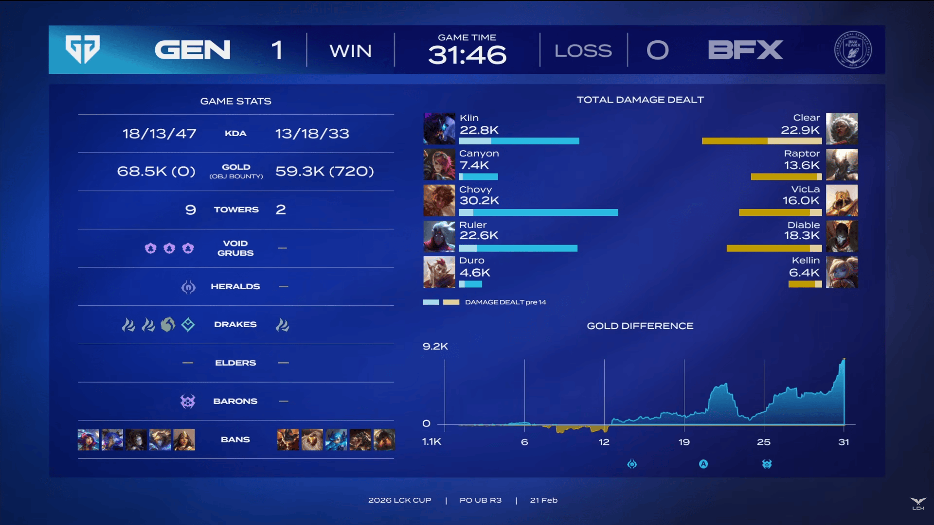 虎扑02月21日讯[GAME1]GEN蓝色方、BFX红色方