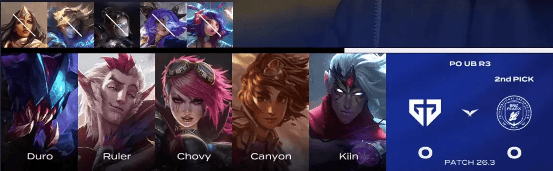 GEN选用:Kiin雷克塞、Canyon蔚、Chovy岩雀、Ruler韦鲁斯、Duro洛