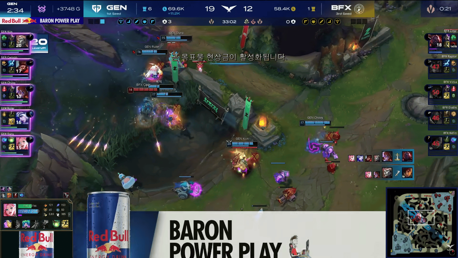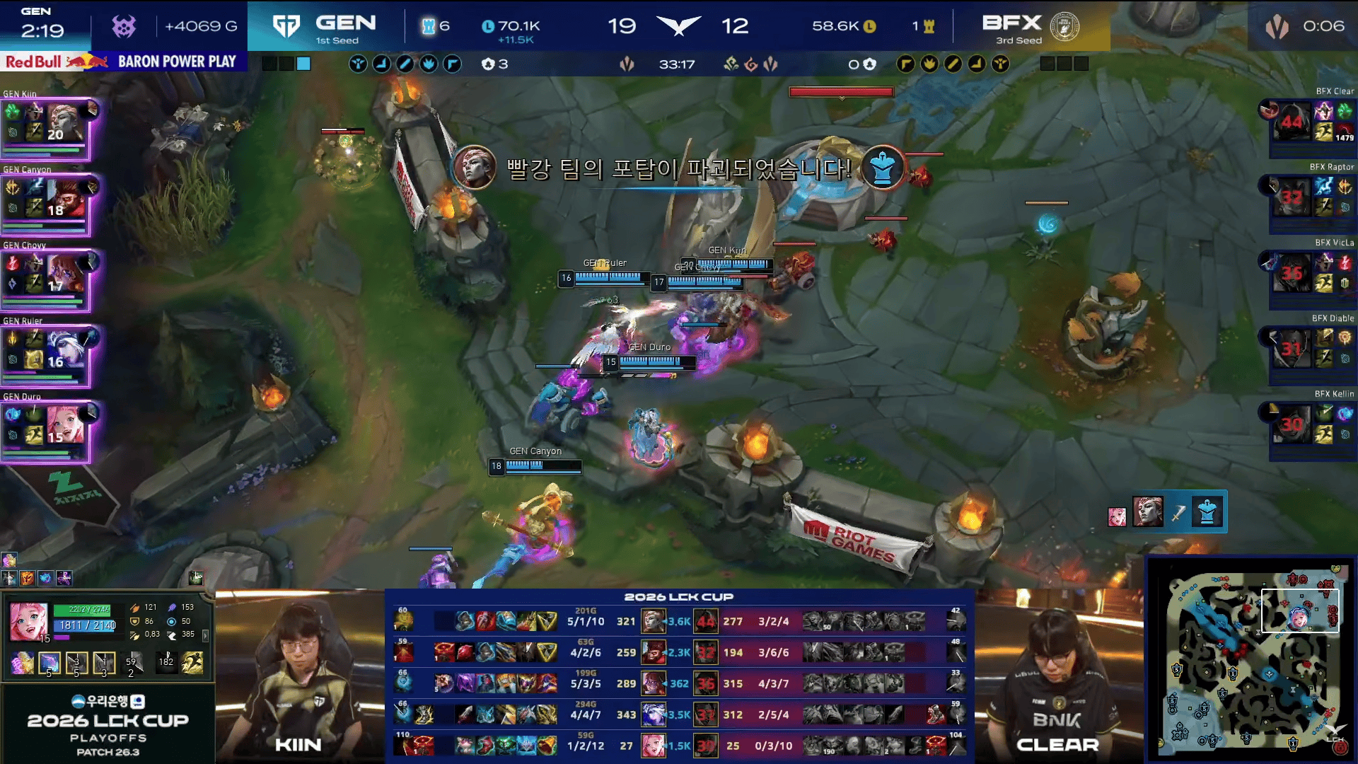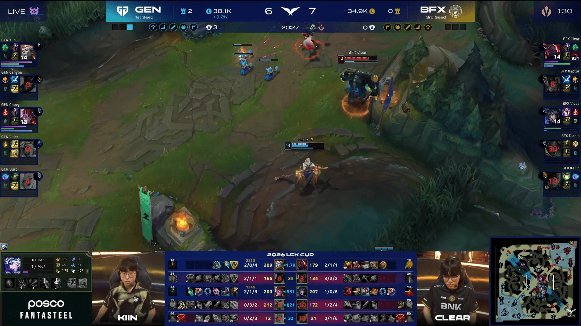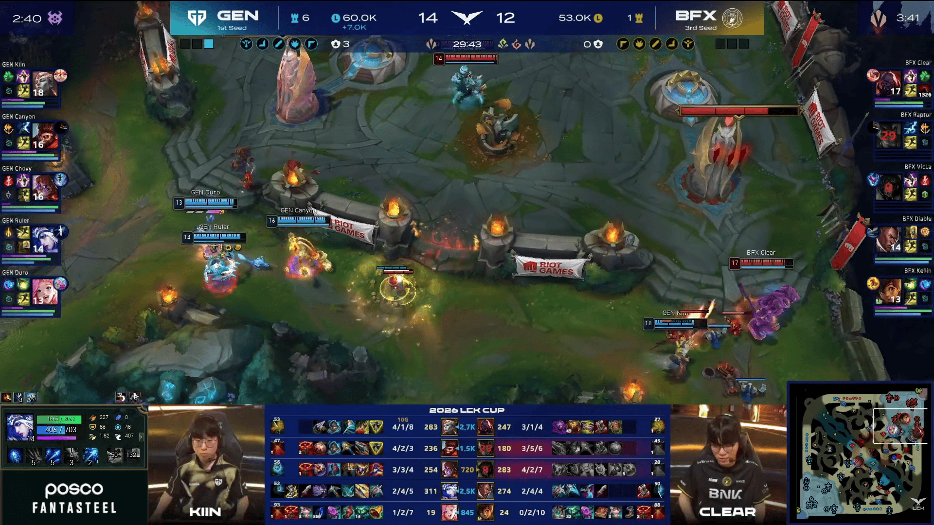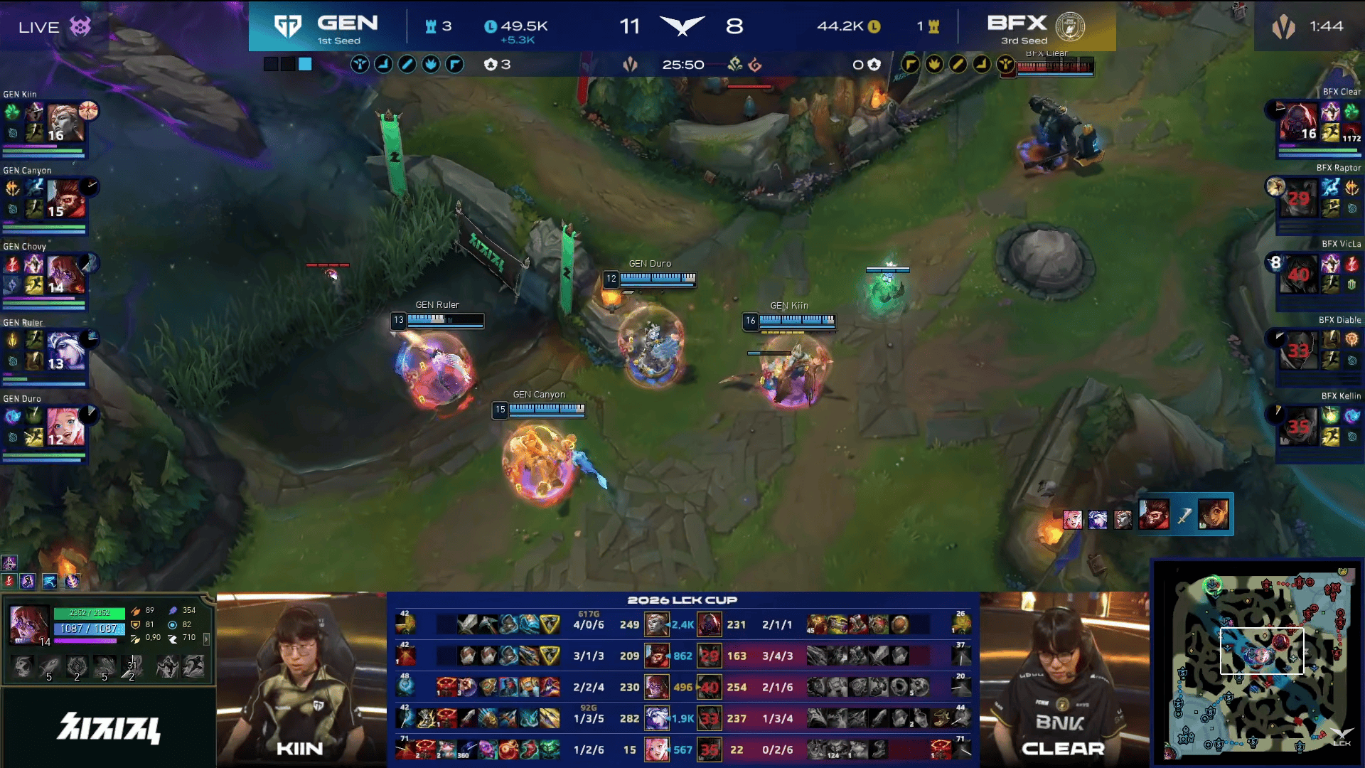 GEN选用:Kiin亚恒、Canyon猴子、Chovy阿萝拉、Ruler艾希、Duro萨勒芬妮