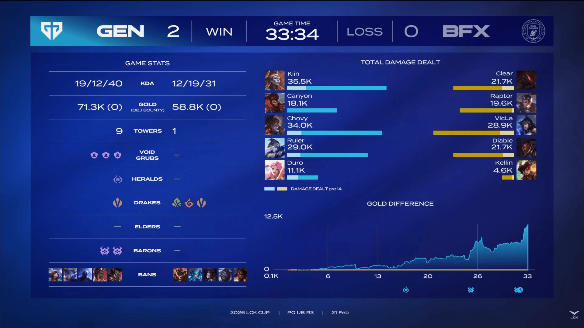虎扑02月21日讯[GAME2]GEN蓝色方、BFX红色方