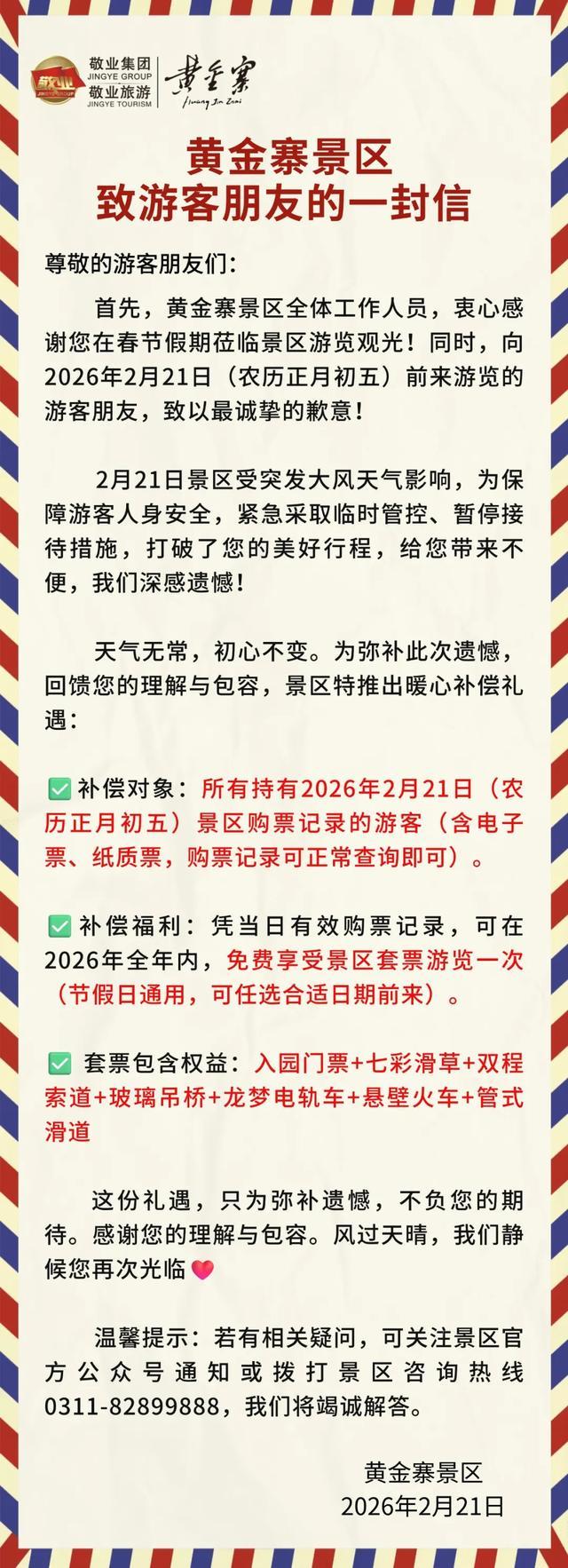 根据气象部门发布的大风预警信息,预计2月21日下午到夜间,我县有大风天气。为确保广大市民、游客安全游览,正定古城灯会于2026年2月21日(农历正月初五)暂停开放一天。由此给您带来的不便,我们深表歉意,敬请谅解。