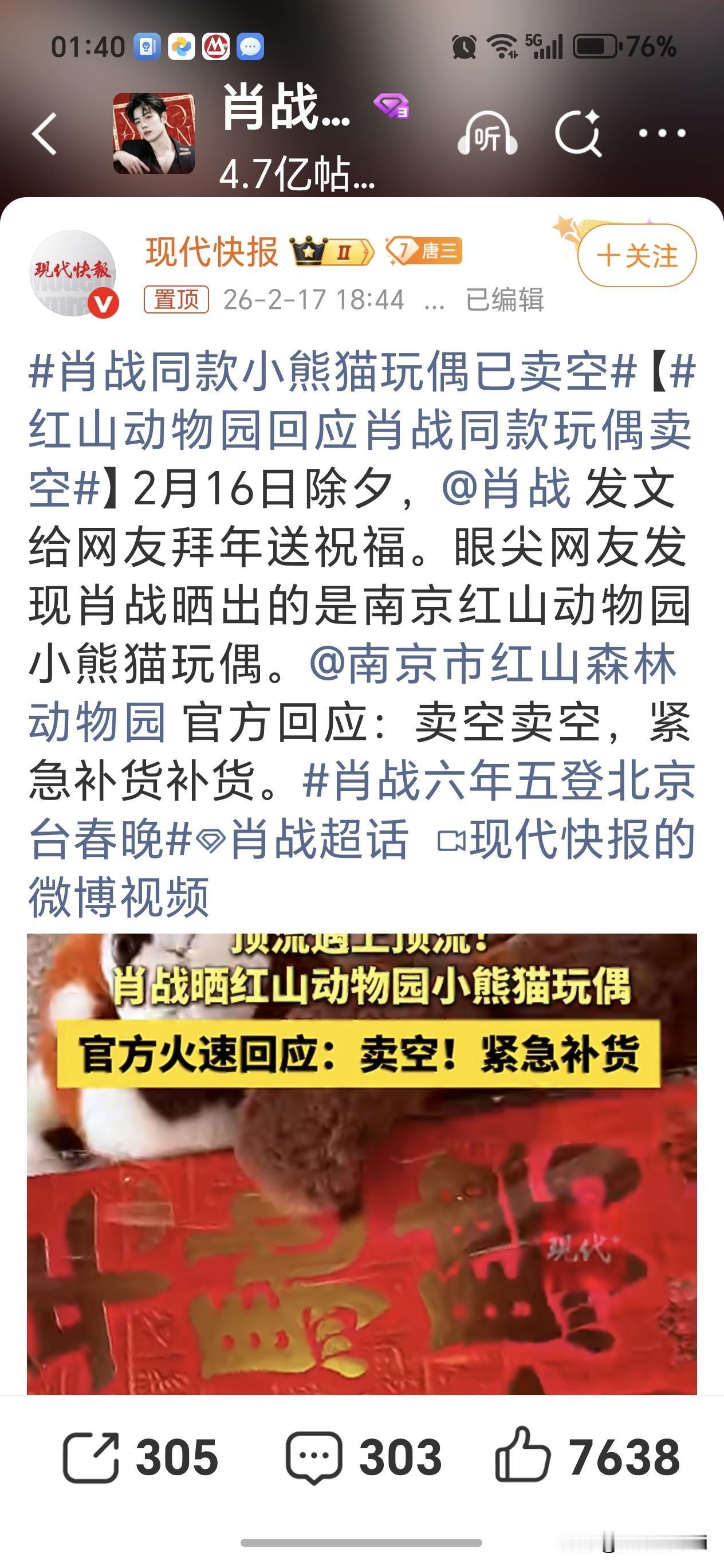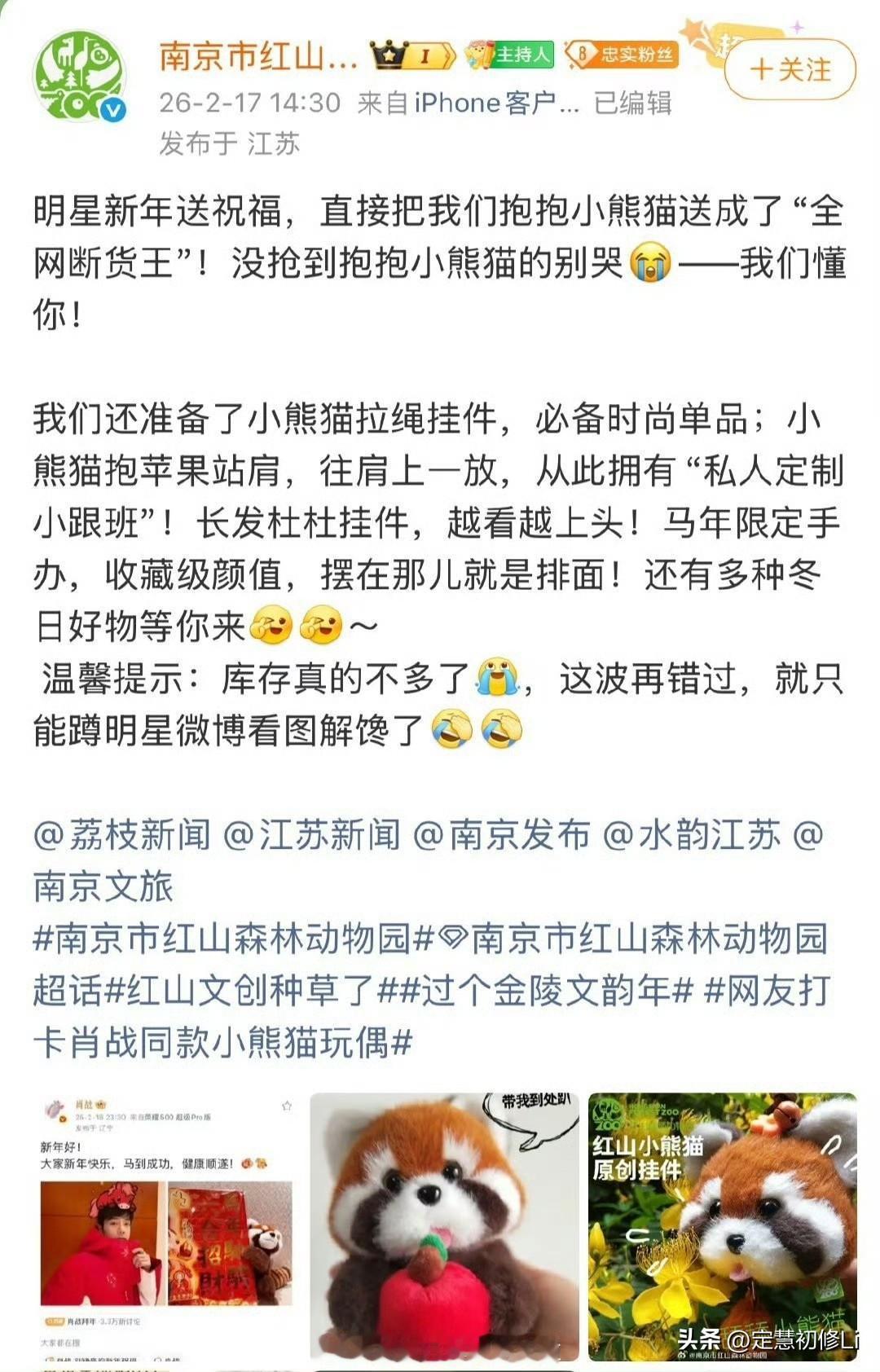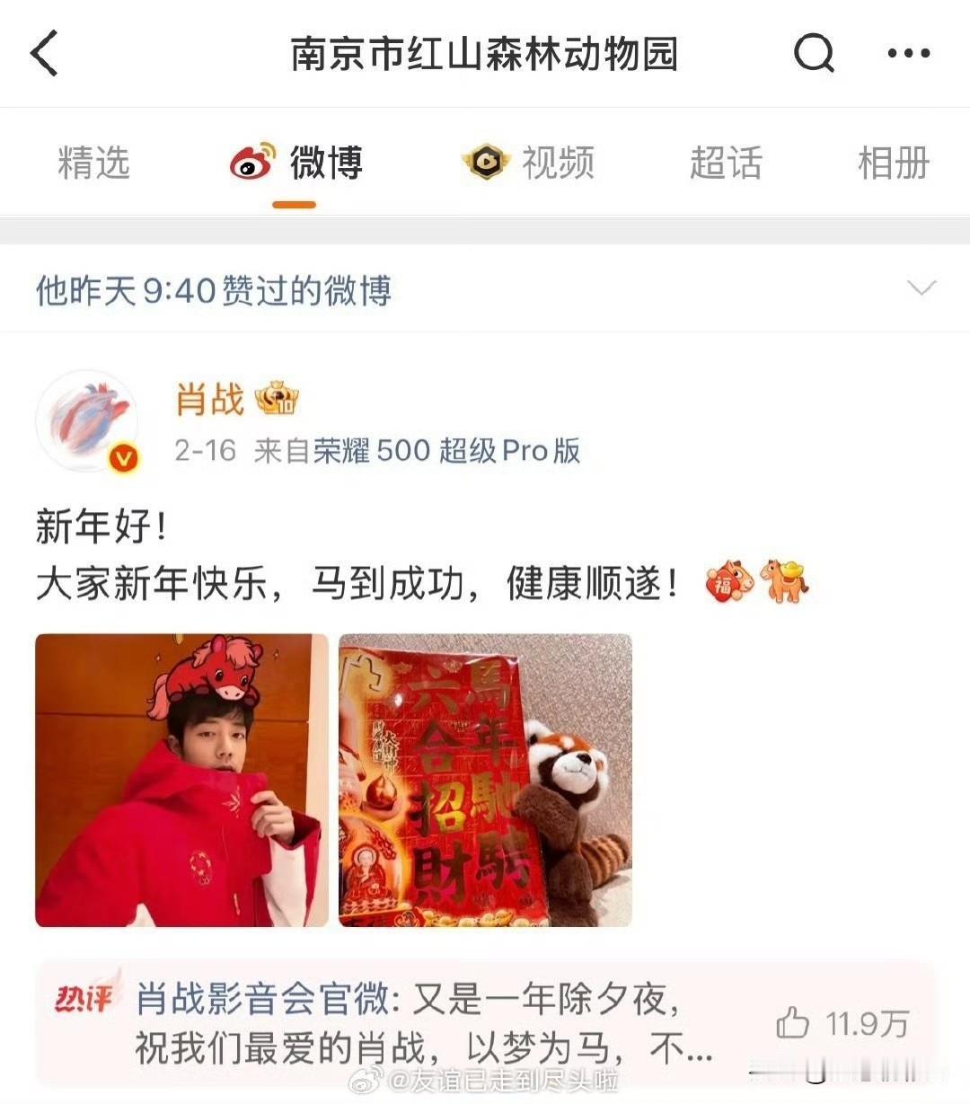 肖战除夕夜给大家拜年图里的小熊猫,已经全网脱销了,红山动物园接住了这泼天的富贵,四处点赞评论转发,忙的不亦乐乎,肖战的影响力太大了