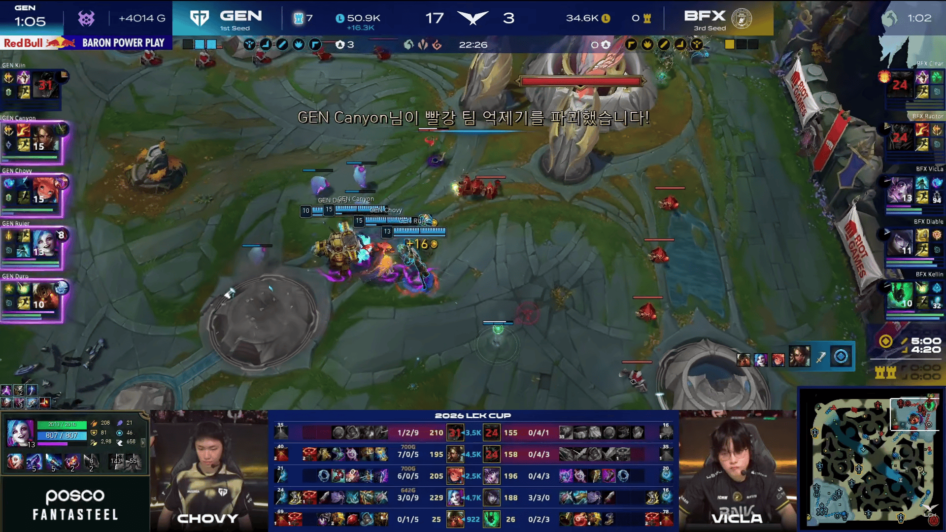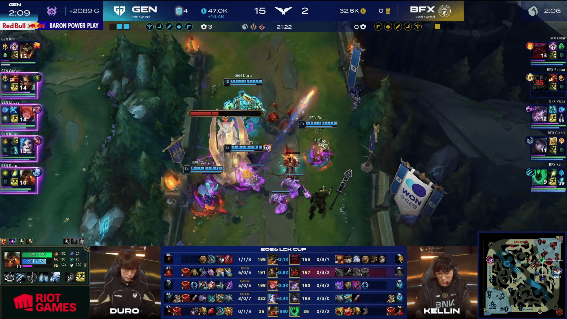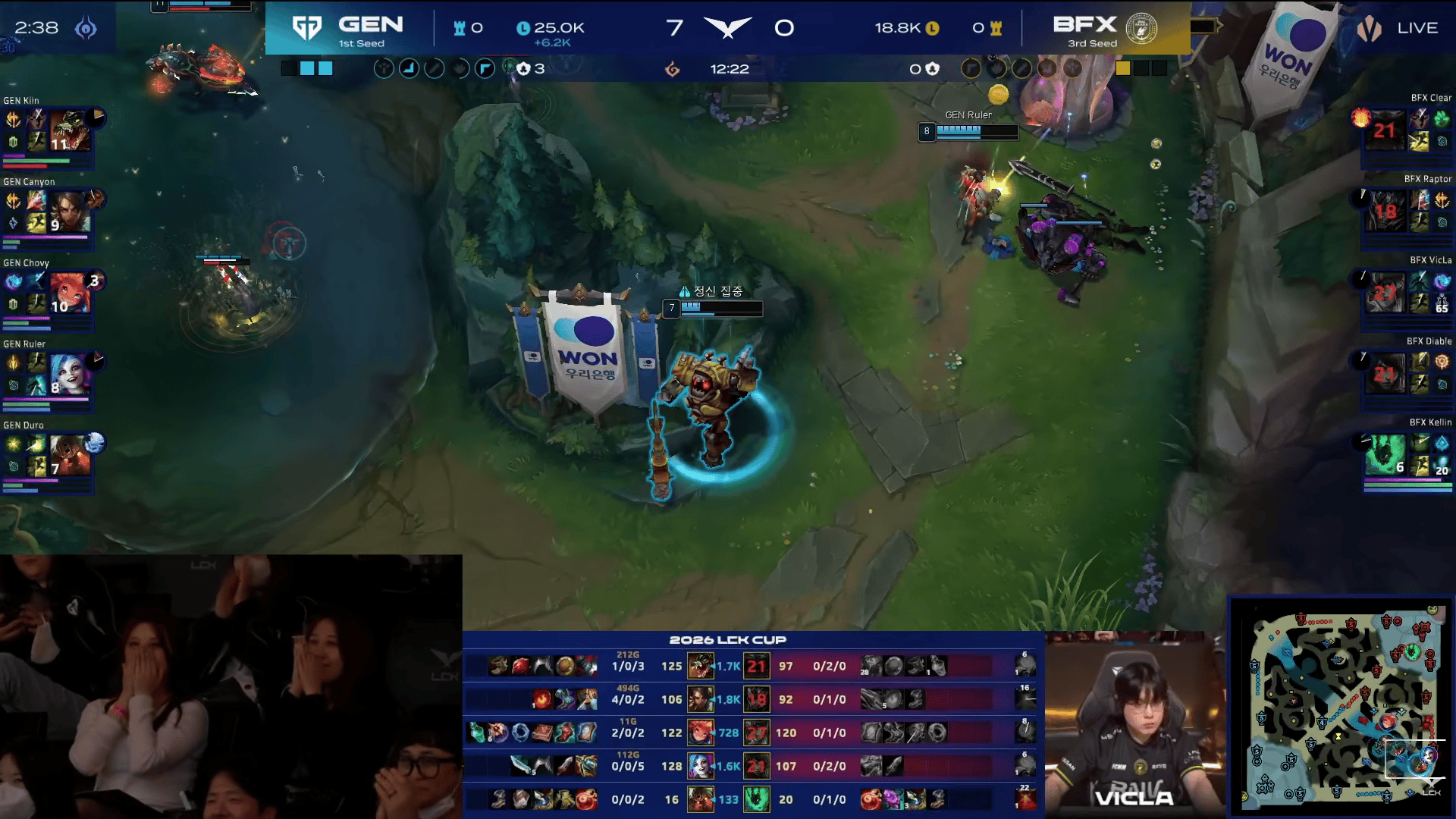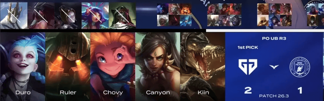 GEN选用:Kiin鳄鱼、Canyon豹女、Chovy佐伊、Ruler金克丝、Duro泰坦