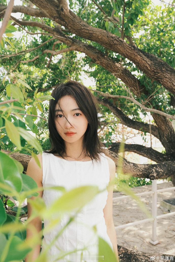 吴谨言 清纯野心家说情话吴谨言提前过上夏天了 海南夏日氛围拉满,白裙配上温柔情话