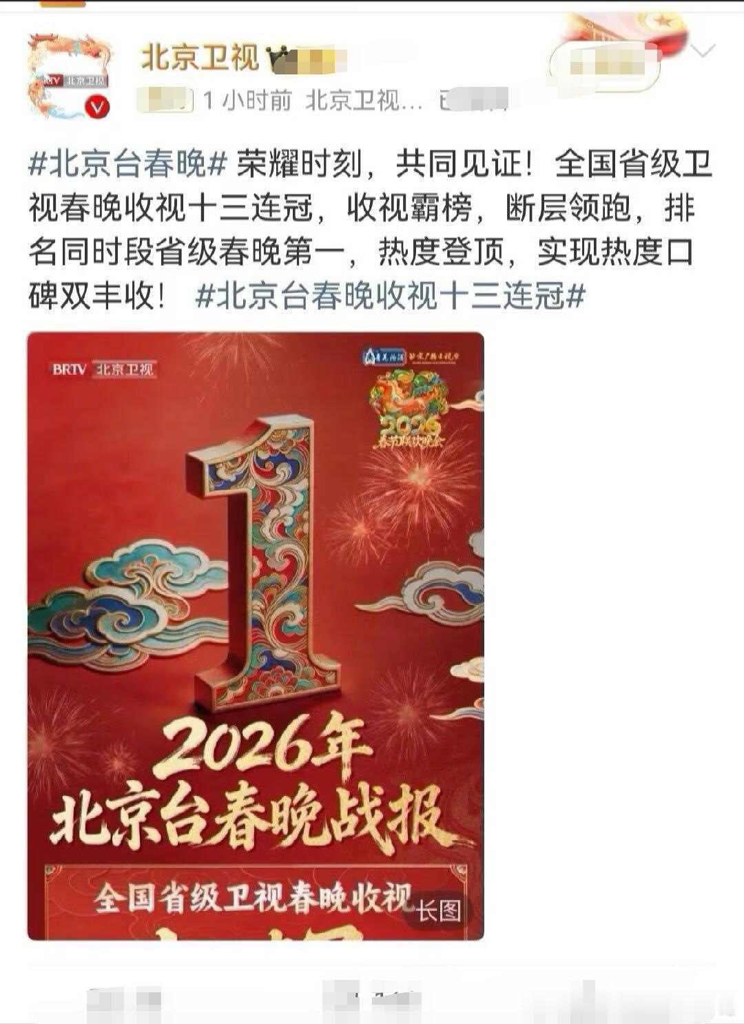 北京台春晚收视率地方台春晚大断层第一!其中肖战表演的舞台《岁岁年年》为北京台春晚