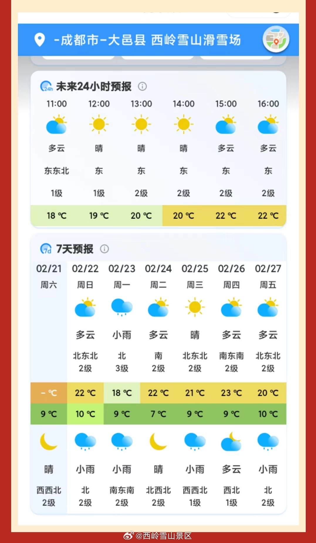 西岭雪山2月22日(初六)气象预报#西岭雪山#