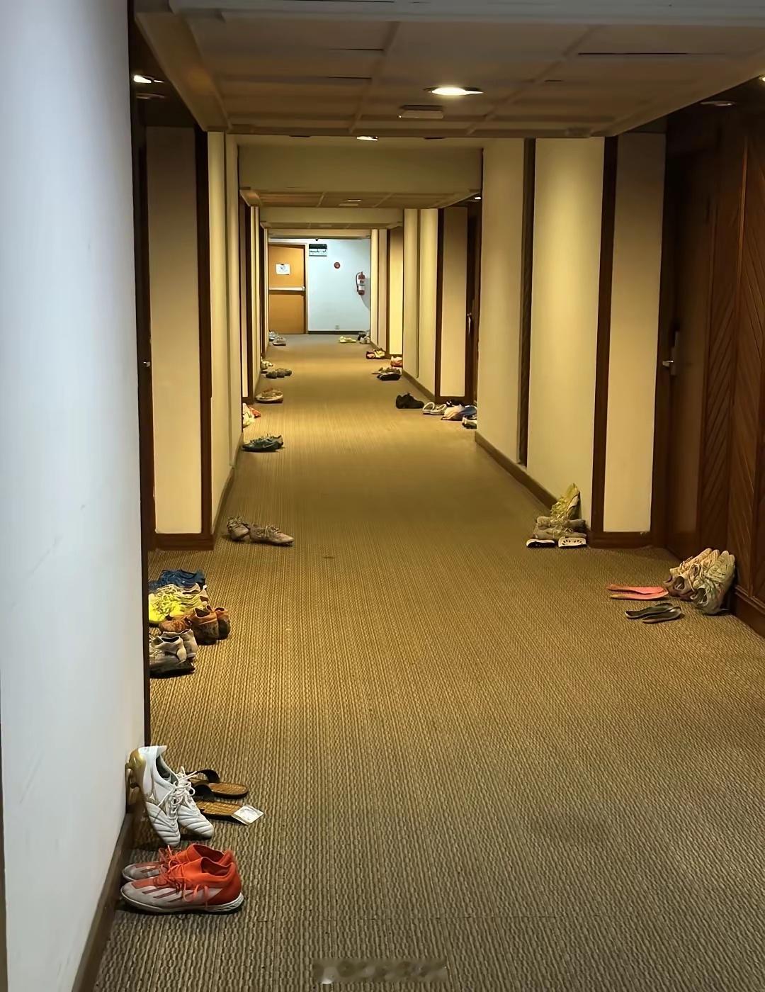 酒店有一层住了好多韩国人,好像是来训练的团队。路过的时候发现——所有房间都把鞋子