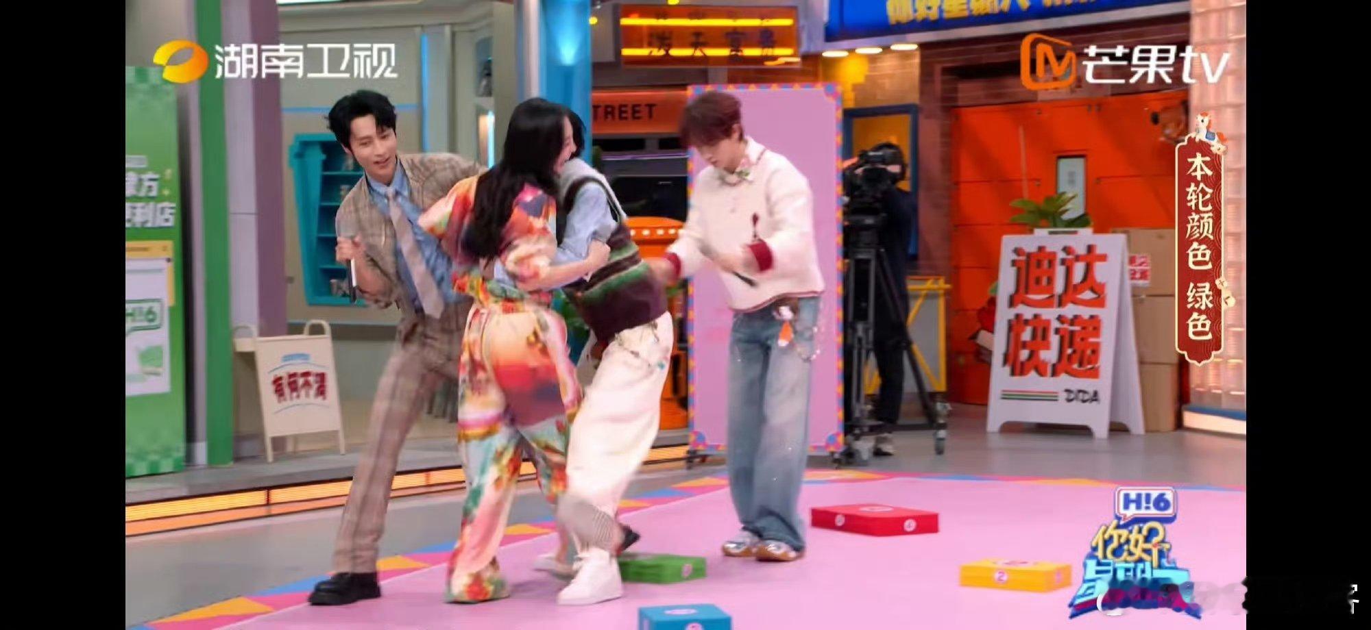 吴昕一掌推翻一团人 游戏里的吴昕也太猛了!一掌直接推开何炅、魏大勋、杨蓉三人抱团,力量感直接拉满!你好星期六