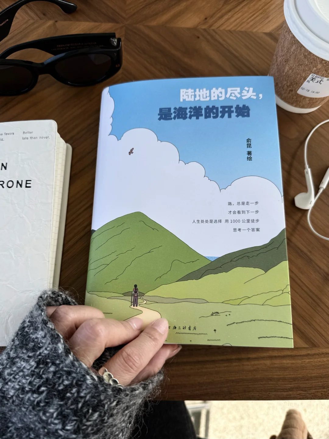 这两天在看俞昆的《陆地的尽头,是海洋的开始》,一本纪实漫画,记录了解开作者人生困惑的一段徒步经历。