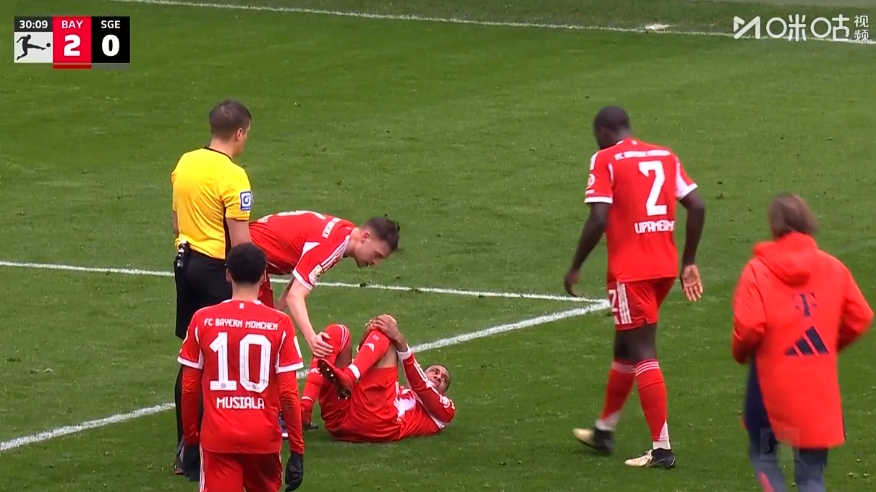 直播吧02月21日讯拜仁vs法兰克福第30分钟,奥利塞在摆脱射门后倒地,捂着自己的左膝,随后队医进场治疗。