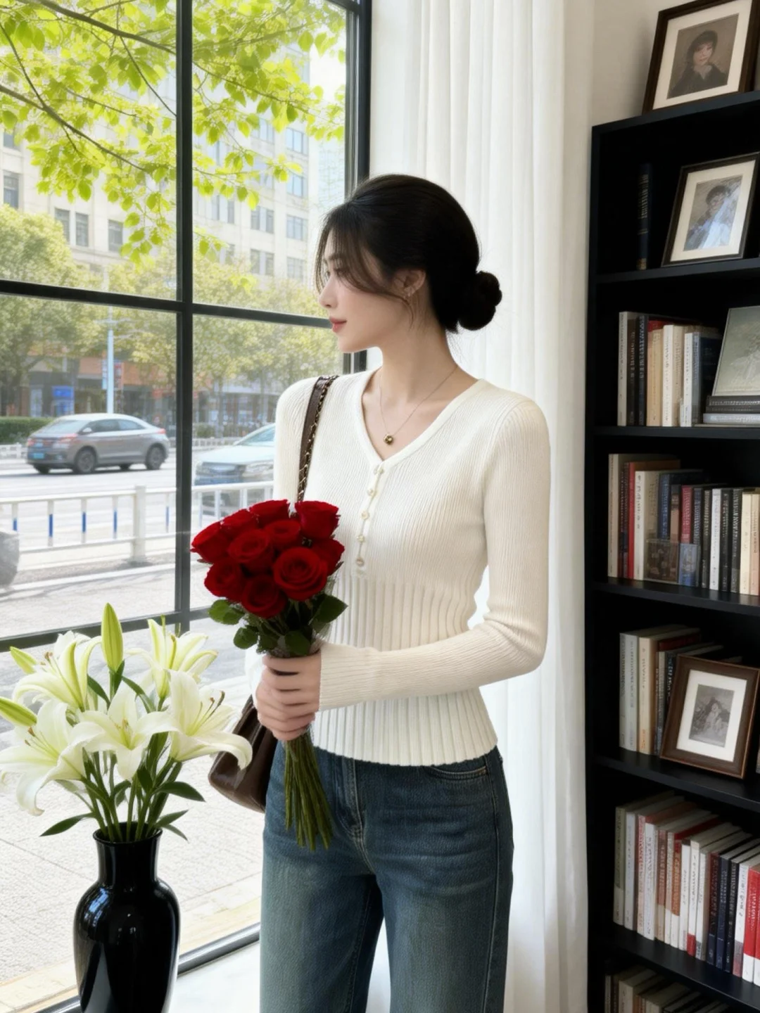 显瘦针织衫 收腰上衣 坑条针织衫 平价好穿针织衫 纯欲风格