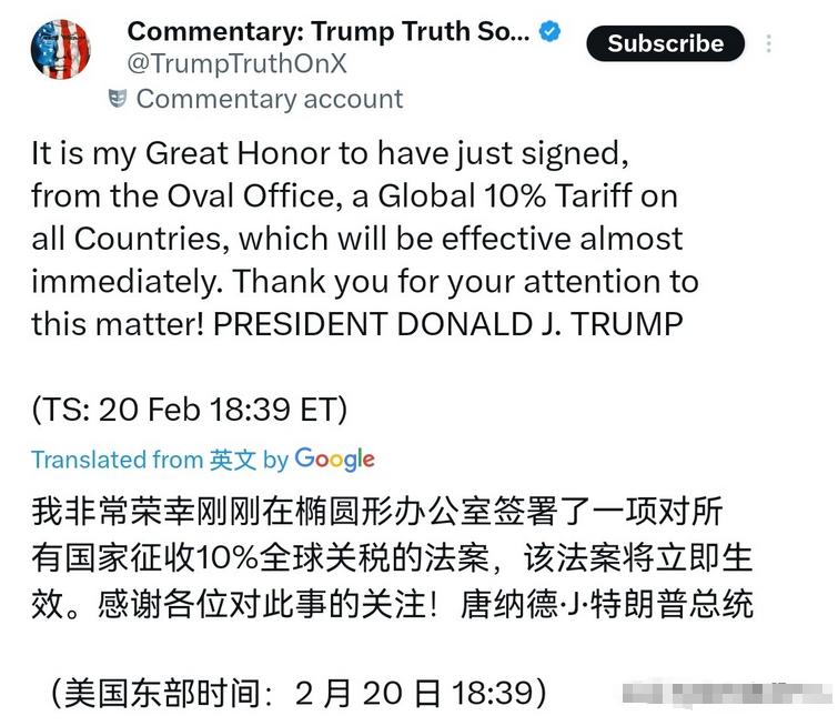 美国的一巴掌,扇晕了刚刚与美国达成协议的高市早苗! 当地时间2月21日,特朗普高调宣称,自己非常荣幸地刚刚在椭圆形办公室,签署了一项对所有国家征收10%全球关税的法案,还强调这项法案几乎将立即生效。 看似是针对全球的普遍政策,可往深了一想,最倒霉、最憋屈的,莫过于刚刚和美国敲定协议的日本,莫过于一心想讨好美国的高市早苗。 为了让美国降低对日本商品的关税,高市早苗政府可谓煞费苦心,甚至不惜血本。 此前,日本足足拿出了5500亿美元的对美投资承诺,才好不容易换来美国的松口,把原本25%的关税降低10%,降到了10%。 这5500亿美元,可不是一笔小数目,是日本咬牙从本就拮据的经济里挤出来的,满心以为能换来一个稳定的美国市场,能让日本企业喘口气,可没想到,一切都是竹篮打水一场空。 特朗普签署的这项全球10%关税法案,看似和日本换来的10%关税持平,可实际上,这就意味着日本花了5500亿美元换来的关税优惠,根本就不存在,等于白扔了几千亿美元,竹篮打水一场空。 而美国早已埋下了陷阱,当初和日本达成协议时就明确约定,要是日本后续不继续履行对美投资承诺,那么关税不仅会回到原来的25%,还会直接涨到35%,相当于变本加厉地压榨日本。 高市早苗恐怕到现在都没缓过神来,自己费尽心机、低声下气讨好美国,不惜牺牲日本的经济利益,换来的却是这样一个出尔反尔的结果。 日本是一个严重依赖海外市场的国家,国内市场狭小,大部分企业的生存都要靠出口,而美国一直是日本最重要的出口市场之一,日企对美国市场的依赖程度极高。 更雪上加霜的是,现在日本和中国的关系闹得很僵,几乎汁彻底闹掰了,原本庞大的中国市场,日本企业也很难再立足。 此前,日本不少企业都靠着中国市场盈利,缓解国内的经营压力,可随着中日关系恶化,这些企业失去了中国市场的支撑,本就举步维艰。 如今,美国又来这么一手,等于彻底堵死了日本企业的退路,要是再无法在美市场立足,日企破产的速度只会越来越快,甚至可能引发连锁反应,拖垮整个日本经济。 更何况,当下日本的经济问题已经十分严重,早就陷入了两难境地。 目前日本经济增速持续低迷,通胀压力不断加大,日元持续走软,长期利率大幅上扬,再加上人口老龄化严重、劳动力短缺,国内制造业乏力,新兴产业发展落后于中美,日本经济已经到了岌岌可危的地步。 高市早苗政府本来想靠着和美国的协议,拉动国内经济,缓解困境,可没想到,反而被美国摆了一道,让日本的经济雪上加霜。 说来说去,高市早苗就是太天真,错把美国的承诺当成了救命稻草,误以为只要讨好美国、付出足够的代价,就能换来美国的扶持和庇护。 可她忘了,美国从来都是唯利是图、自私自利的,在利益面前,任何承诺和协议都一文不值,日本不过是美国用来收割利益的工具罢了。 现在,高市早苗陷入了进退两难的境地,继续对美投资,只会让日本经济更加拮据,陷入恶性循环;不继续投资,又要面临美国35%的高额关税,日企更是难以承受。 这一巴掌,不仅扇晕了高市早苗,更扇醒了所有抱有幻想的日本人——依附美国,从来都没有好下场,所谓的同盟和承诺,不过是美国用来压榨盟友的借口罢了。 接下来,日本该何去何从,高市早苗该如何收拾这个烂摊子,恐怕谁也说不准,但可以肯定的是,日本的日子,只会越来越难过喽。