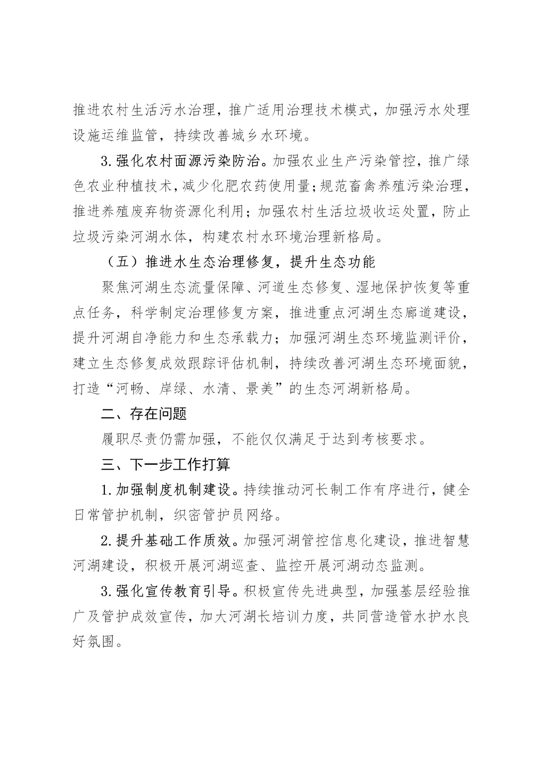 河湖长制工作开展情况报告