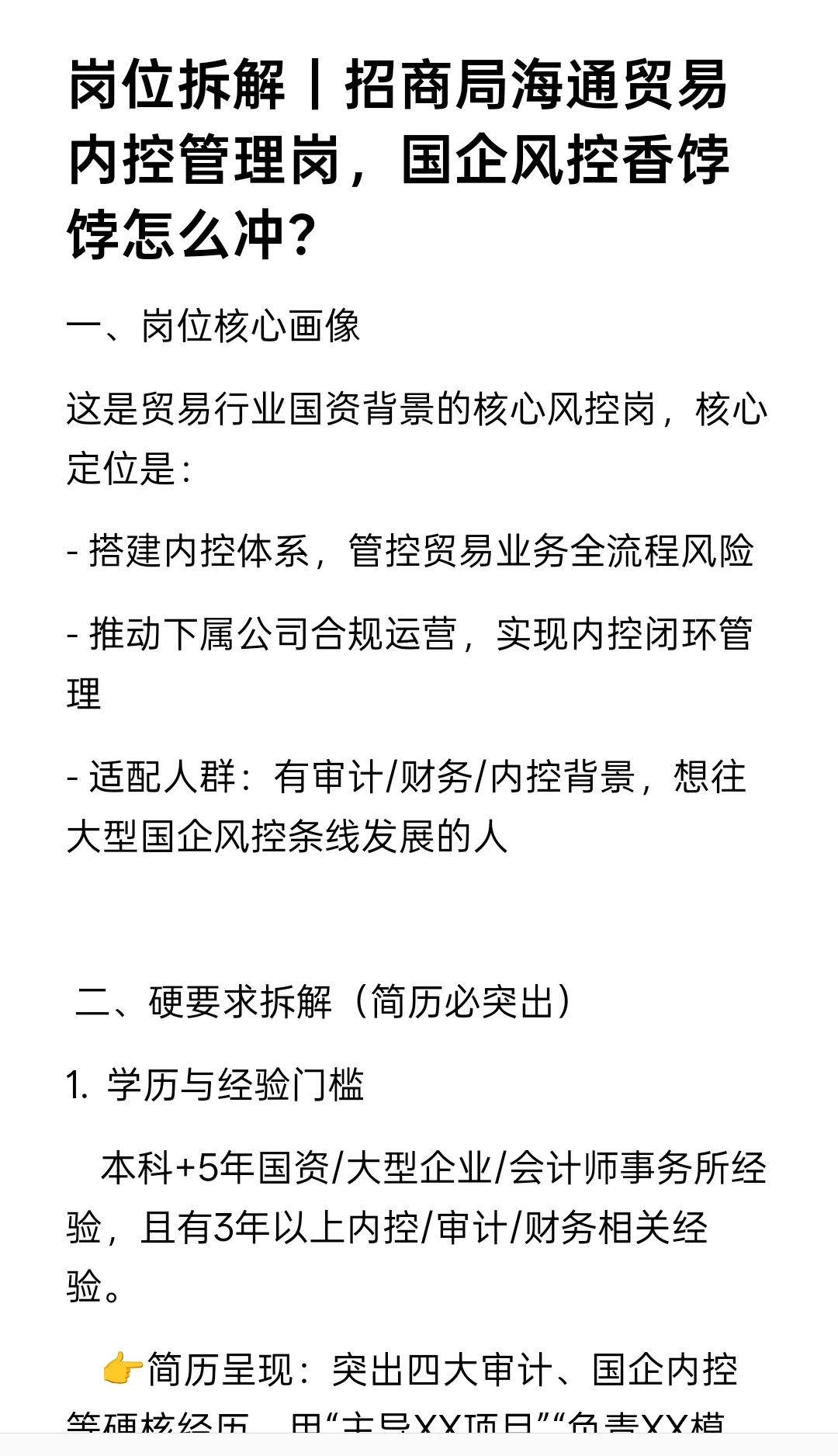 - 适配人群:有审计/财务/内控背景,想往大型国企风控条线发展的人