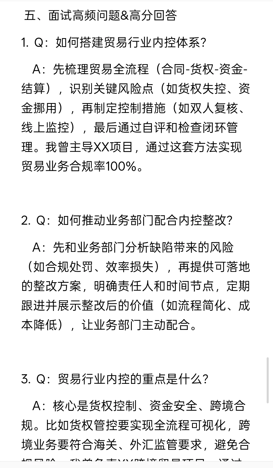 ✨面试话术:“我曾组织3家子公司开展内控自评,通过制定统一标准、定期跟进,最终实现缺陷整改率95%,顺利通过集团审计。”