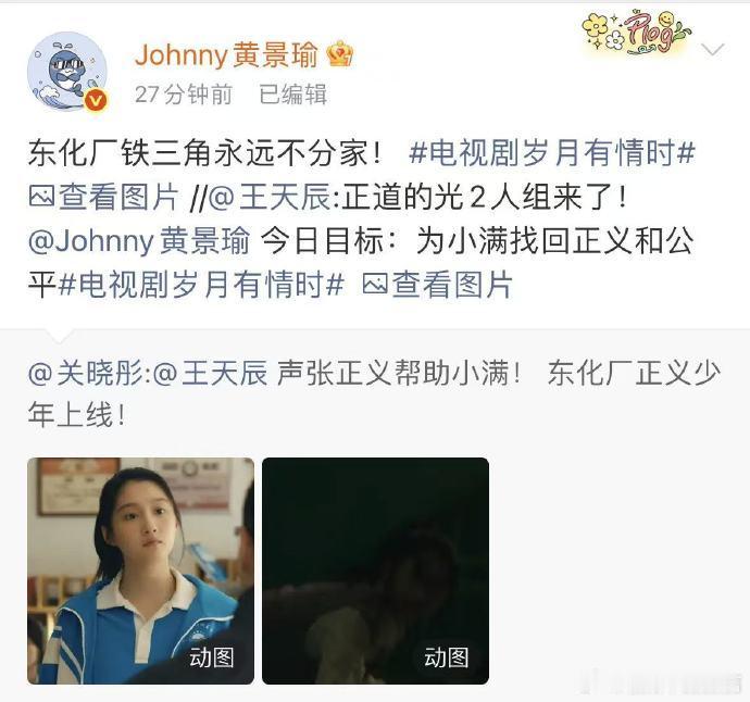 黄景瑜关晓彤王天辰演上铁三角了真的被东化厂三只狠狠治愈到!戏里是并肩撑腰的铁三角,戏外互动也超有爱,这种从一而终的好朋友,太让人羡慕了。