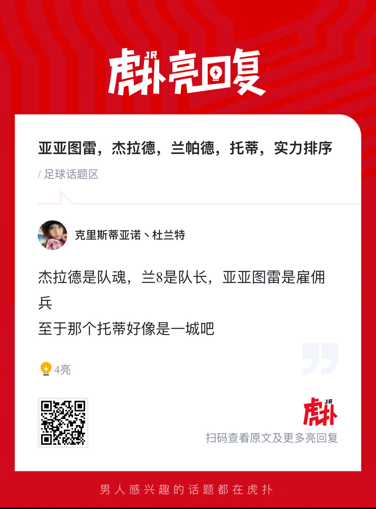 亚亚图雷,杰拉德,兰帕德,托蒂,按实力如何排序?