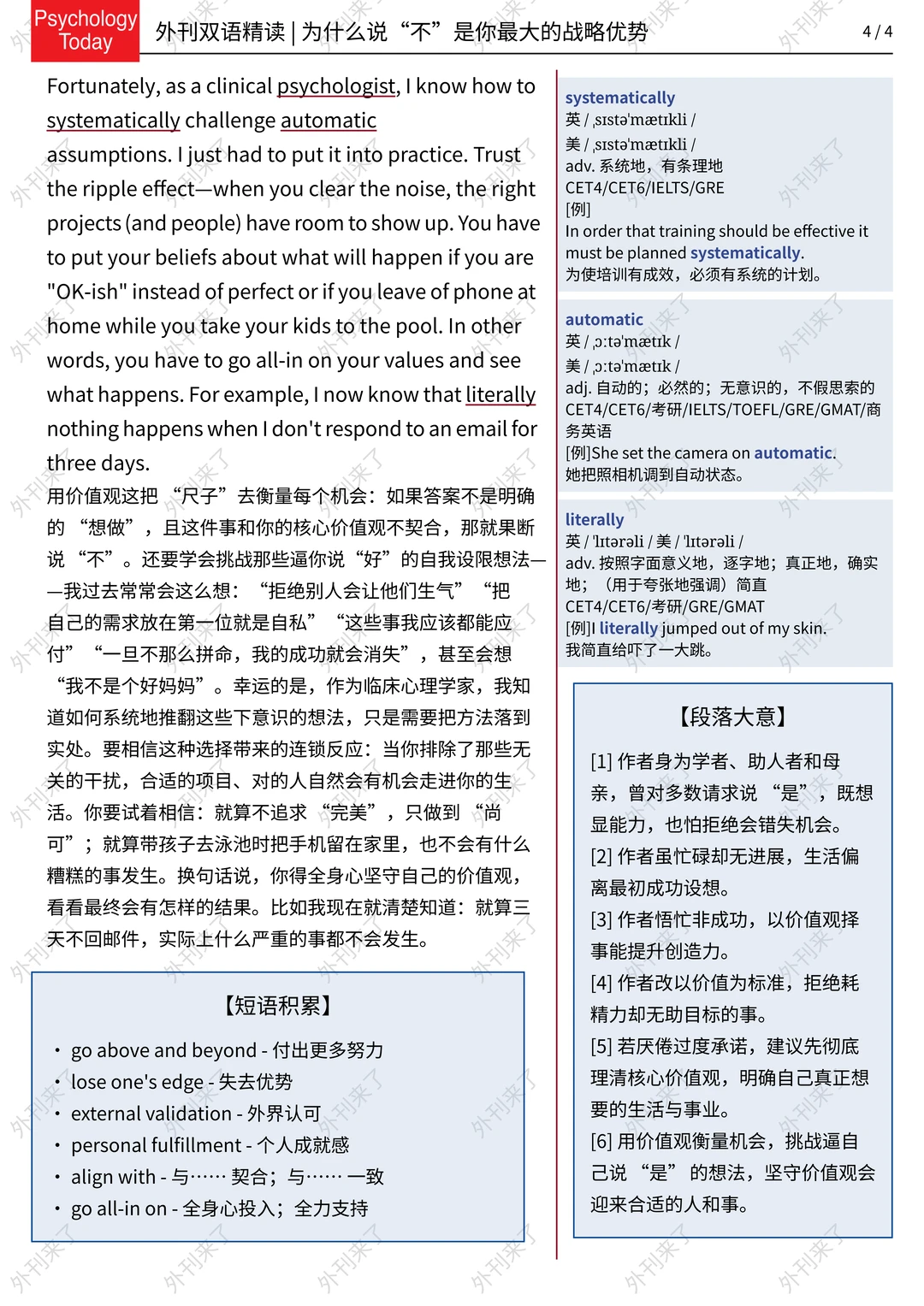 🔥英语学习必备的外刊精读 ⭐选自Psychology Today ⭐每周会从原刊中选取多篇文章精读 🏆🏆重点单词⤵️ 🏅go above and beyond - 付出更多努力 🏅lose one's edge - 失去优势 🏅external validation - 外界认可 🏅personal fulfillment - 个人成就感 🏅align with - 与…… 契合;与…… 一致 🏅go all-in on - 全身心投入;全力支持