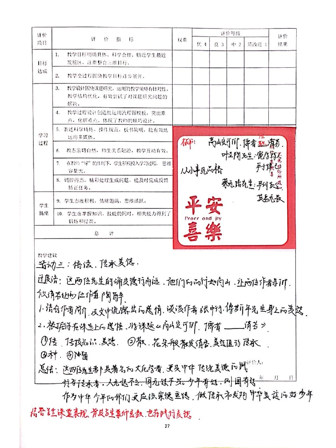 张慧琼老师进行的是群文阅读(不知道这个说法对不对),《叶圣陶先生二三事》和《我所敬仰的蔡元培先生》两篇文章一起学习,再总结学习规律,感悟其中的美德。