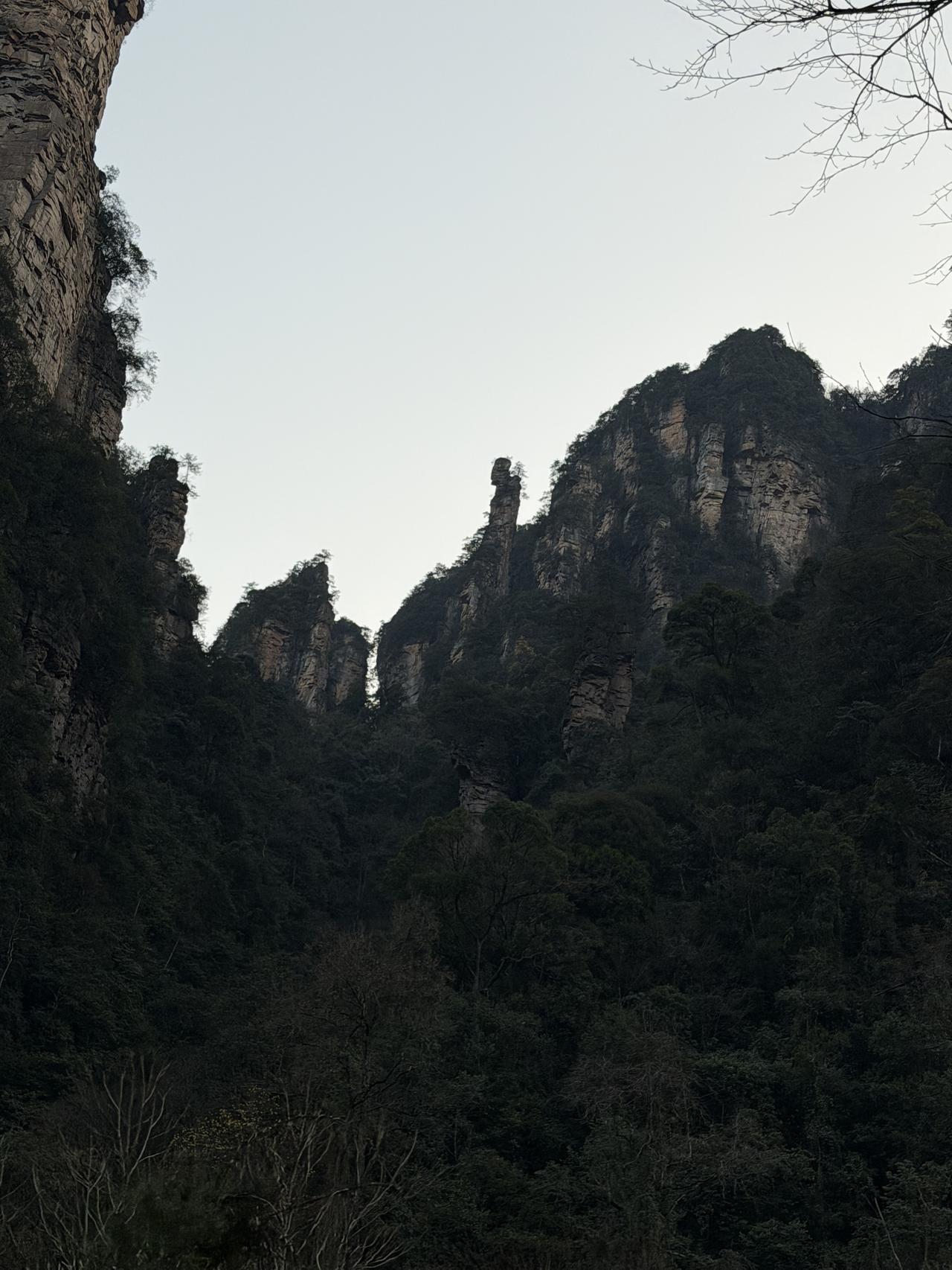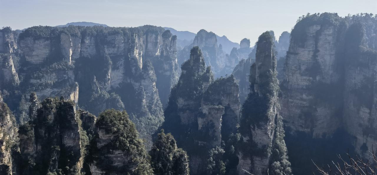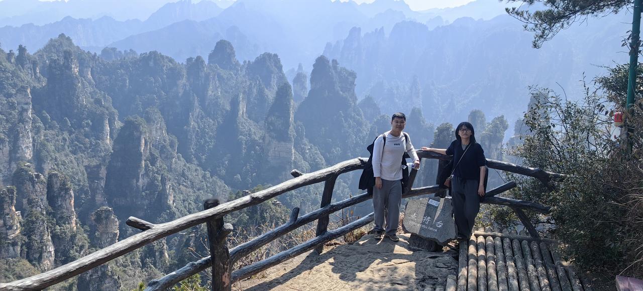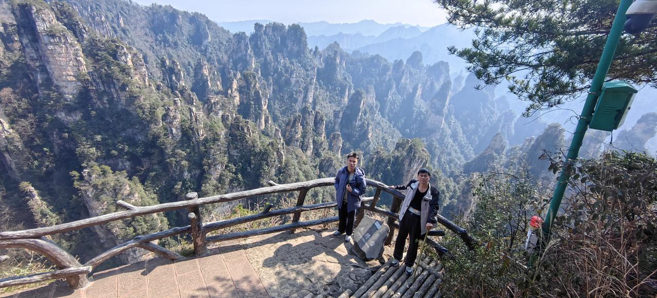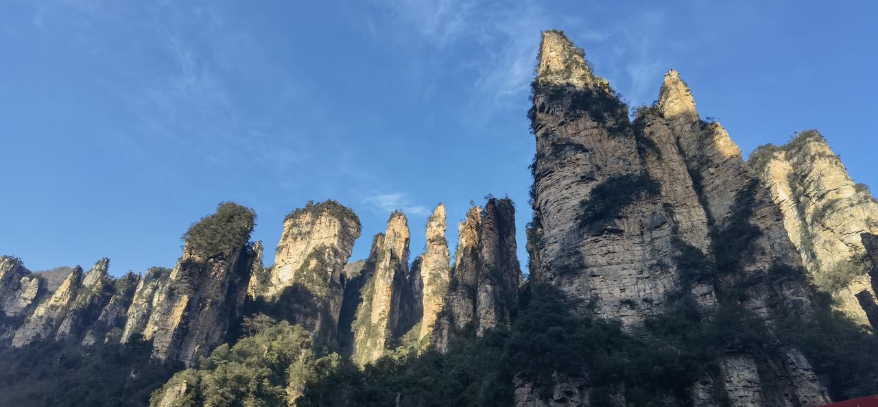 张家界第1日游(2.20) 春节行旅非好候, 景区愈旺人愈稠; 从来热门张家界, 长假奔袭客不愁。 东门预约满未留, 近住咫尺却西头; 六十公里途遥远, 未做攻略怨无由。 晨风依然冷飕飕, 春暖料峭寒初透; 杨家界走乌龙寨, 索道耗时轮滞留。 长城烽烟戏诸侯, 姻缘天合人所求; 近望天下第一桥, 红丝飘带系情柔。 迷魂台绕迷魂游, 石柱错落神若谋; 阿凡达幻觅者众, 百元大钞印墨油。 金鞭溪水枯断流, 十里画廊月如钩; 百龙电梯候时苦, 下得袁界赏诸猴。 二十余载故地游, 大儿尚记专家楼。 春日拾景伴诗酒, 年华莫复老来秋。 张家界沿途风景 张家界