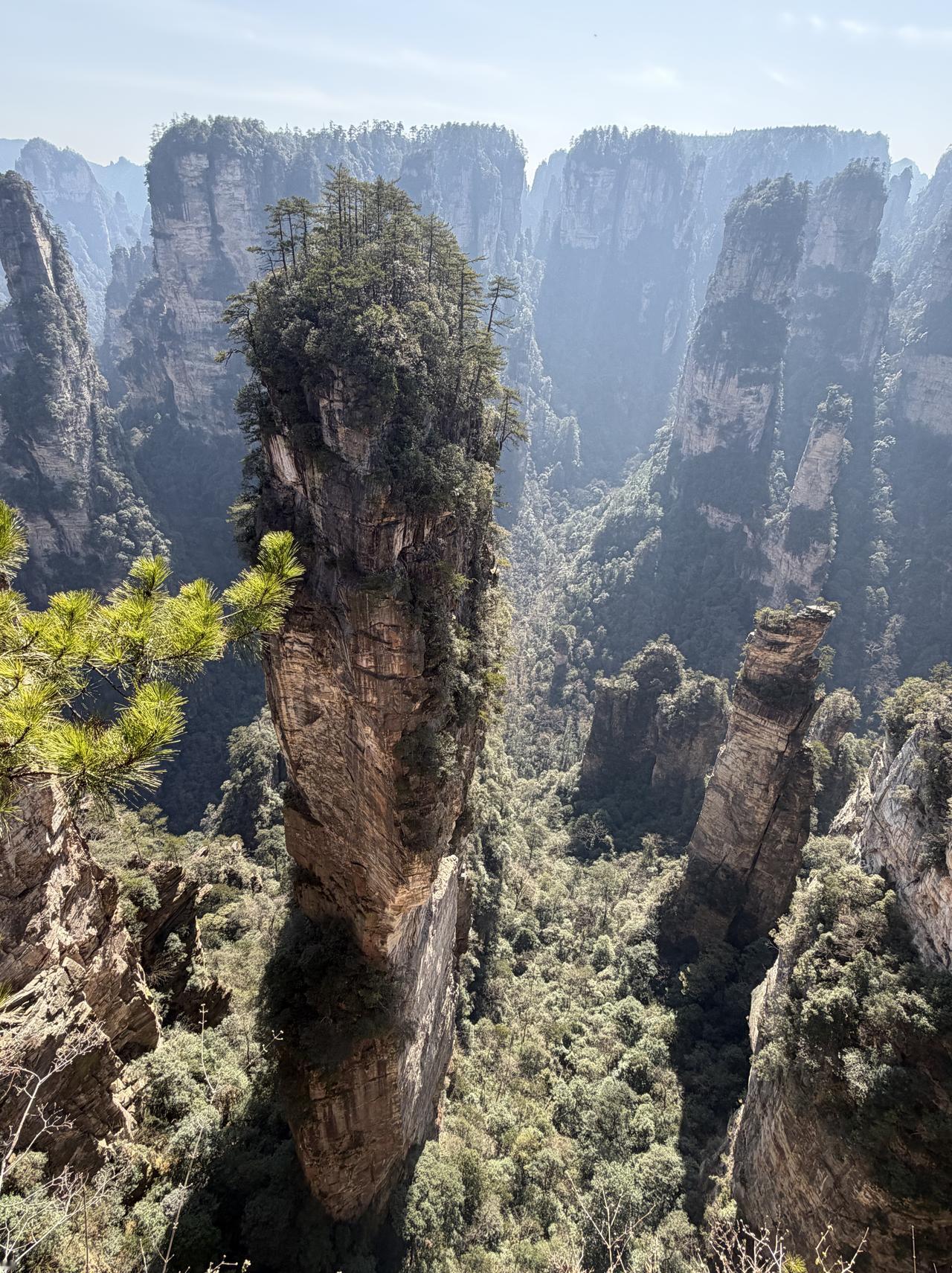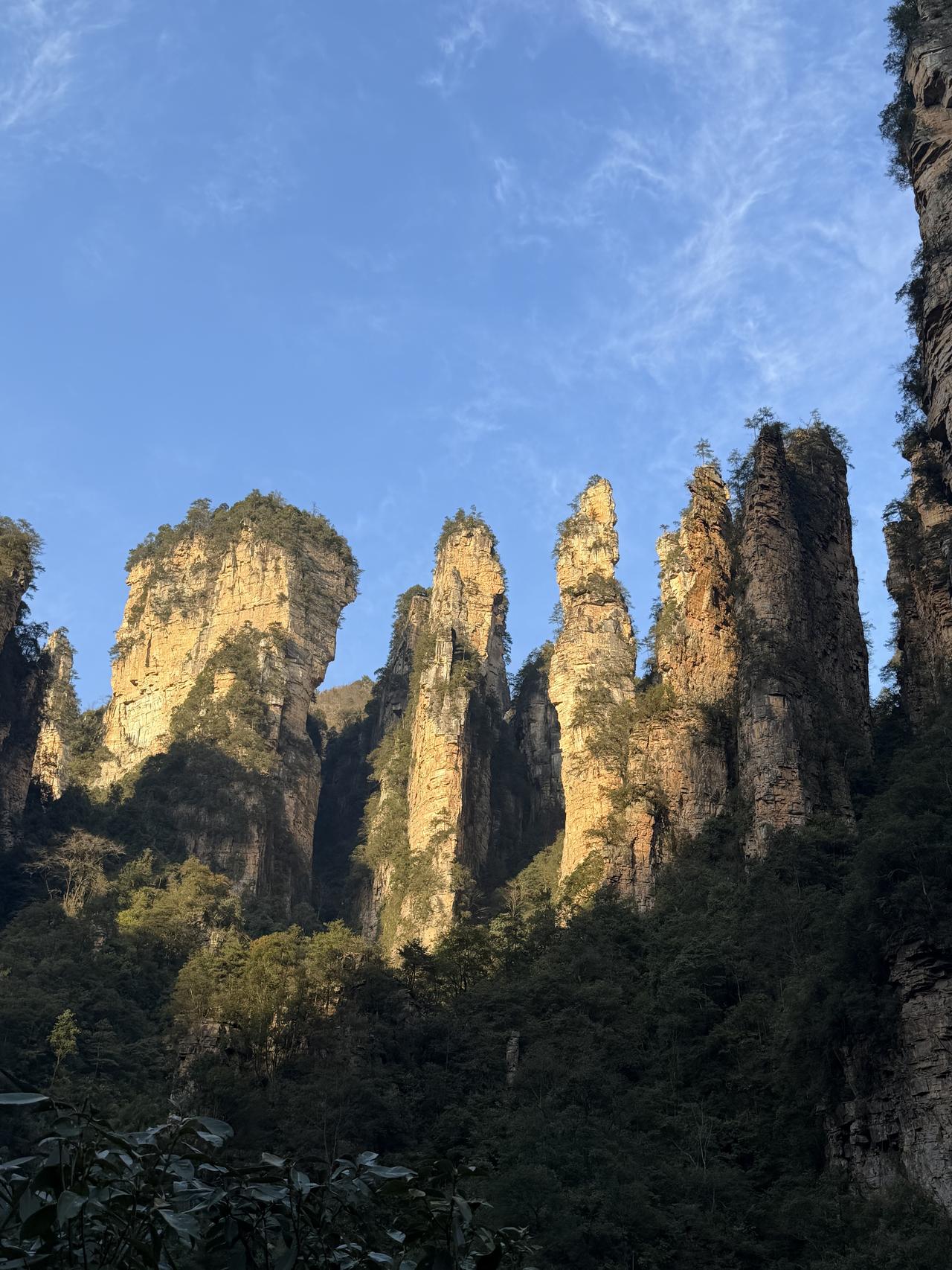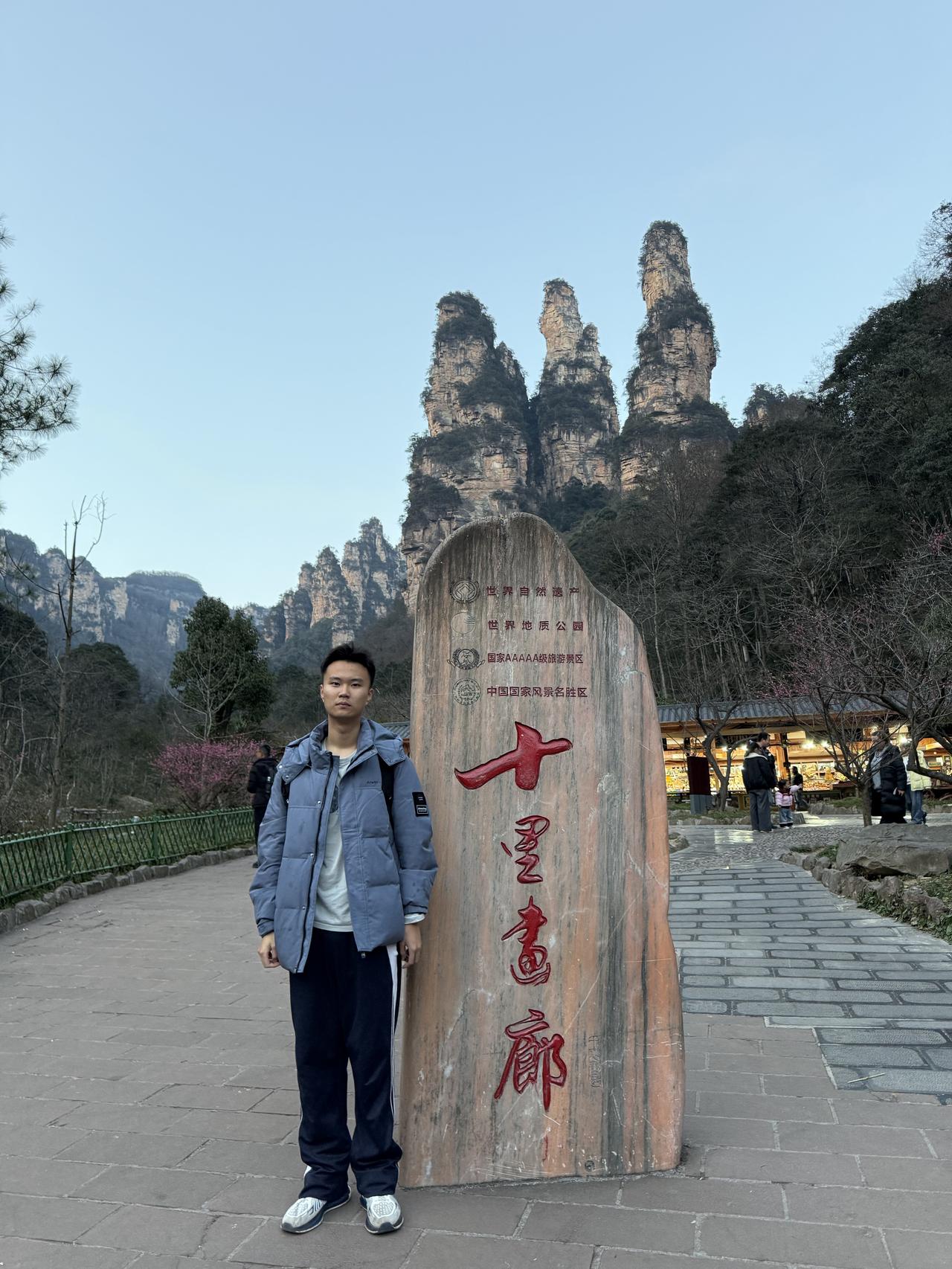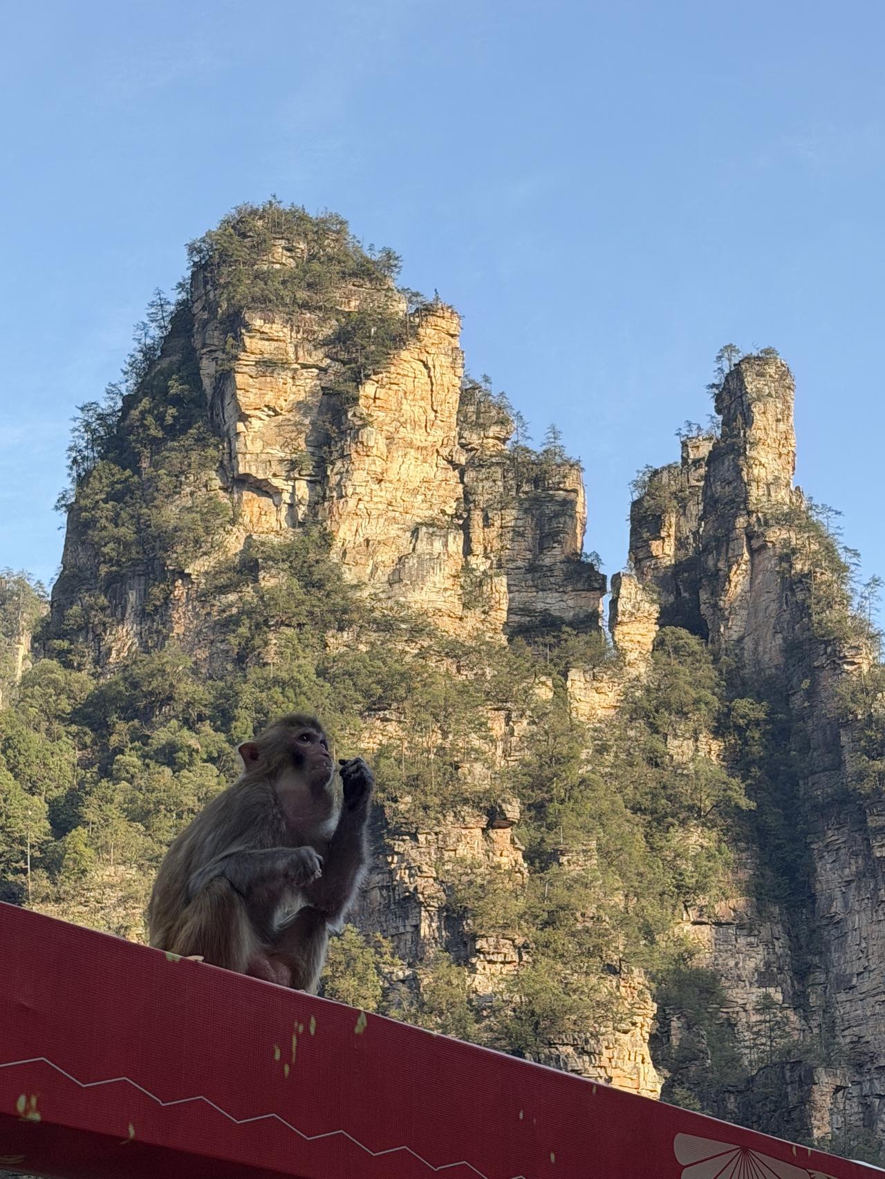 张家界第1日游(2.20) 春节行旅非好候, 景区愈旺人愈稠; 从来热门张家界, 长假奔袭客不愁。 东门预约满未留, 近住咫尺却西头; 六十公里途遥远, 未做攻略怨无由。 晨风依然冷飕飕, 春暖料峭寒初透; 杨家界走乌龙寨, 索道耗时轮滞留。 长城烽烟戏诸侯, 姻缘天合人所求; 近望天下第一桥, 红丝飘带系情柔。 迷魂台绕迷魂游, 石柱错落神若谋; 阿凡达幻觅者众, 百元大钞印墨油。 金鞭溪水枯断流, 十里画廊月如钩; 百龙电梯候时苦, 下得袁界赏诸猴。 二十余载故地游, 大儿尚记专家楼。 春日拾景伴诗酒, 年华莫复老来秋。 张家界沿途风景 张家界