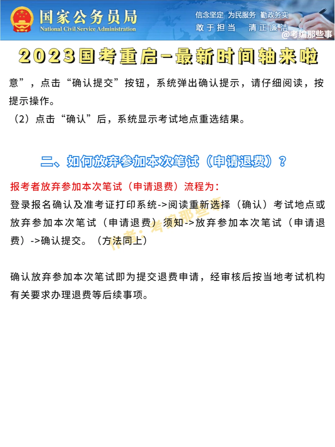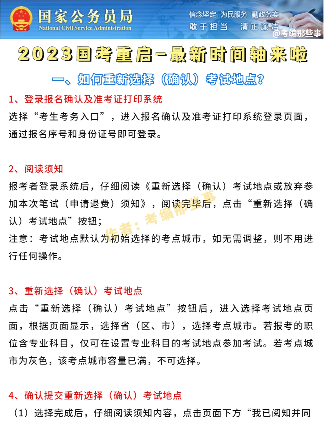 流程:登录报名确认及准考证打印系统->阅读重新选择(确认)考试地点或放弃参加本次笔试(申请退费)须知->重新选择(确认)考试地点->确认提交。